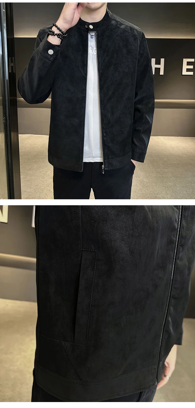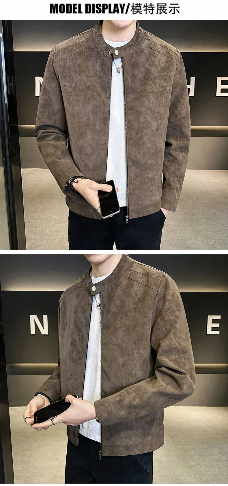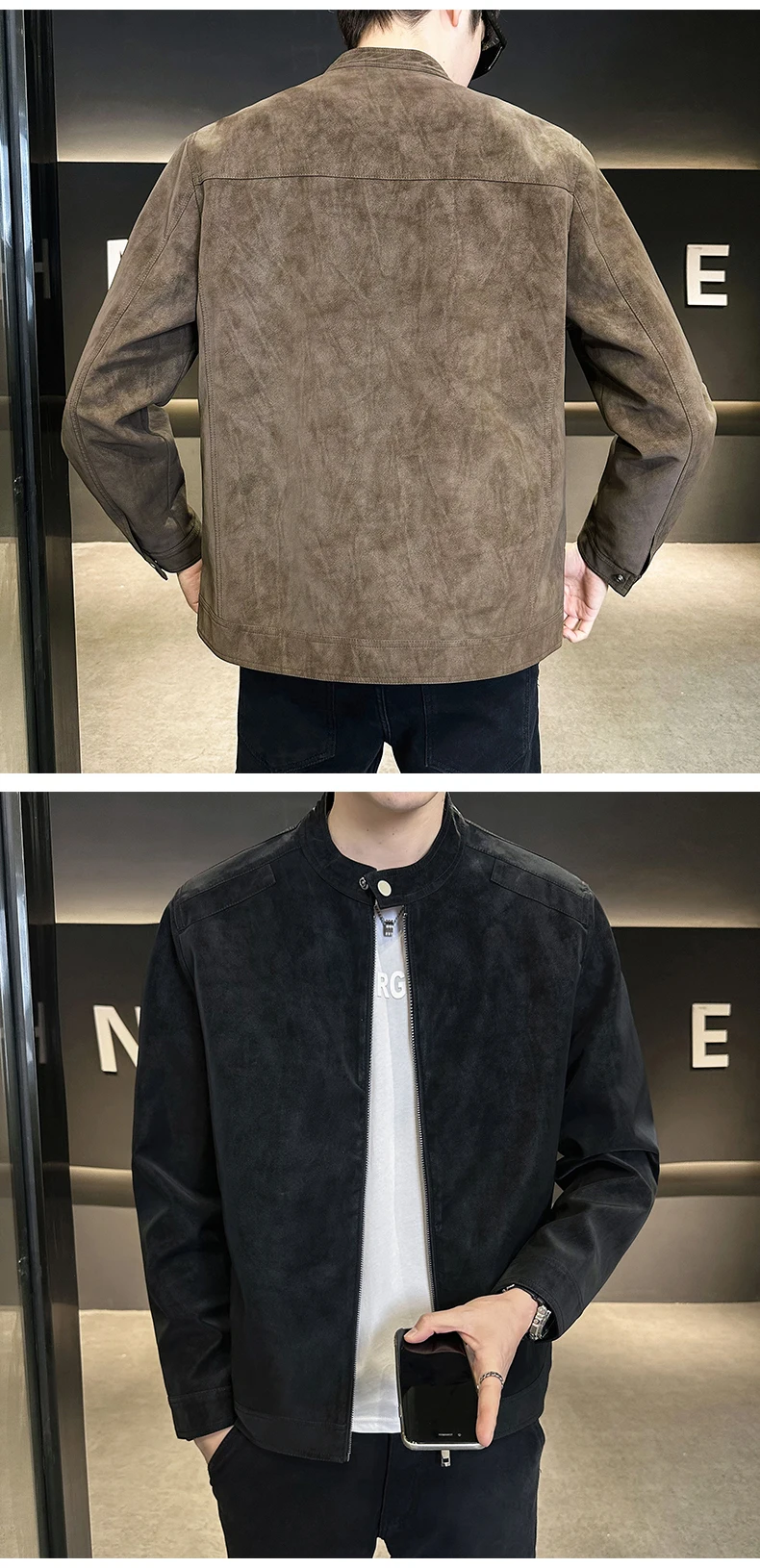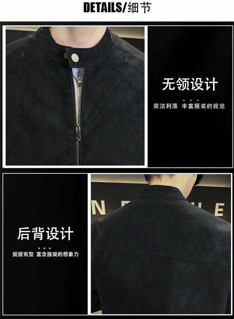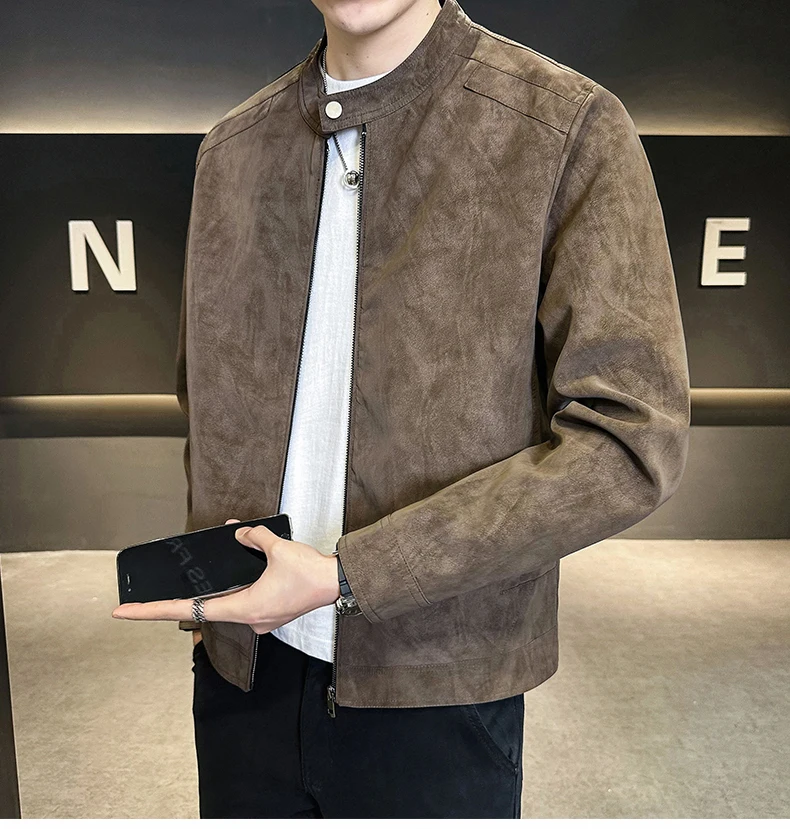 Giacca in pelle con colletto rialzato di alta qualità autunno e inverno, giacca in pelle da motociclista retrò, giacca in pelle retrò da uomo