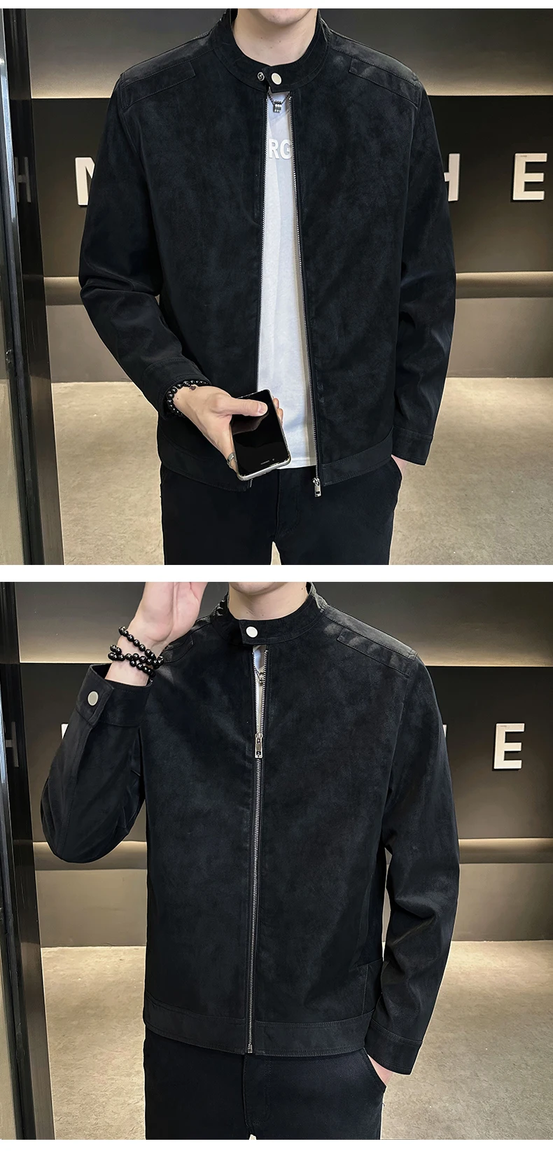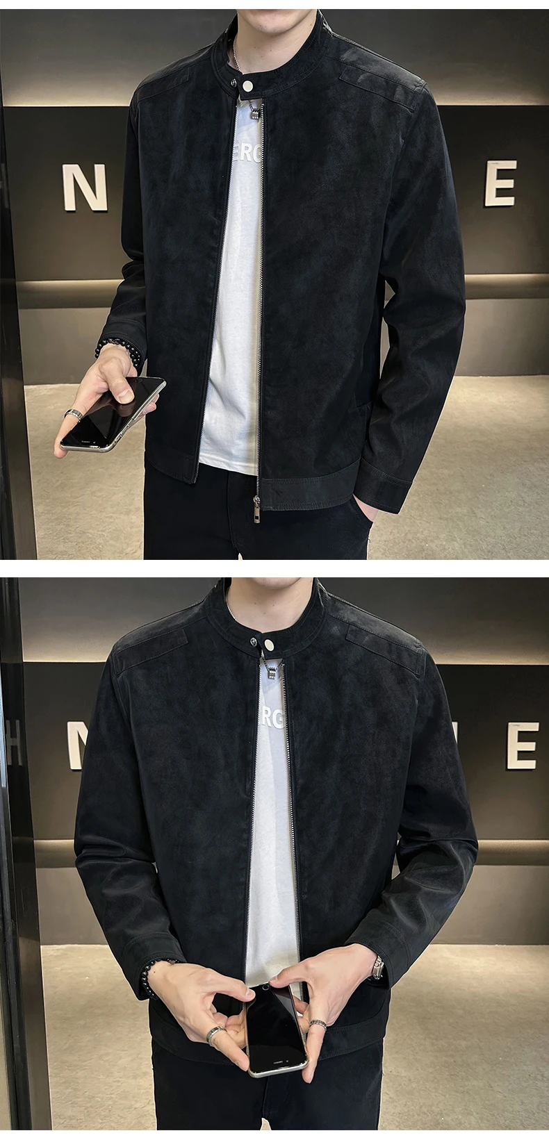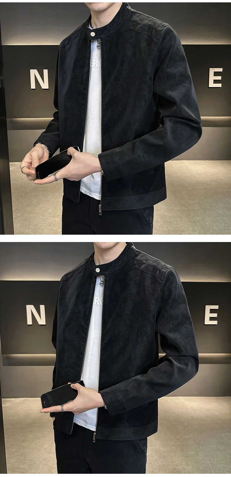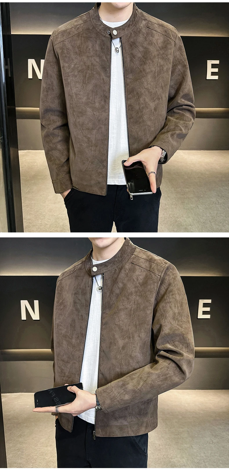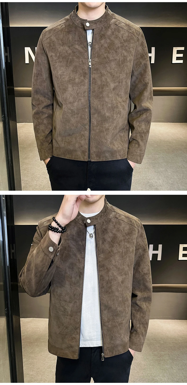 Giacca in pelle con colletto rialzato di alta qualità autunno e inverno, giacca in pelle da motociclista retrò, giacca in pelle retrò da uomo