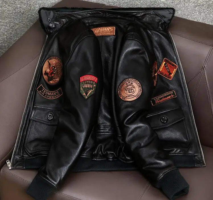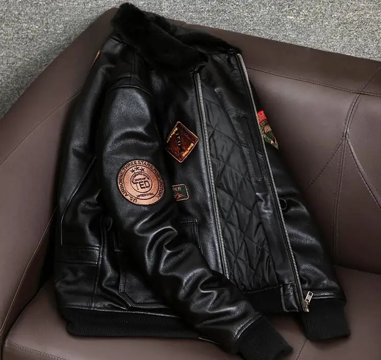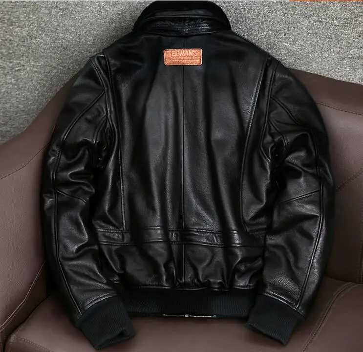 Giacca in pelle con strato di intestazione pilota dell’aeronautica Cappotto vintage nero da uomo invernale spesso 1,8 kg