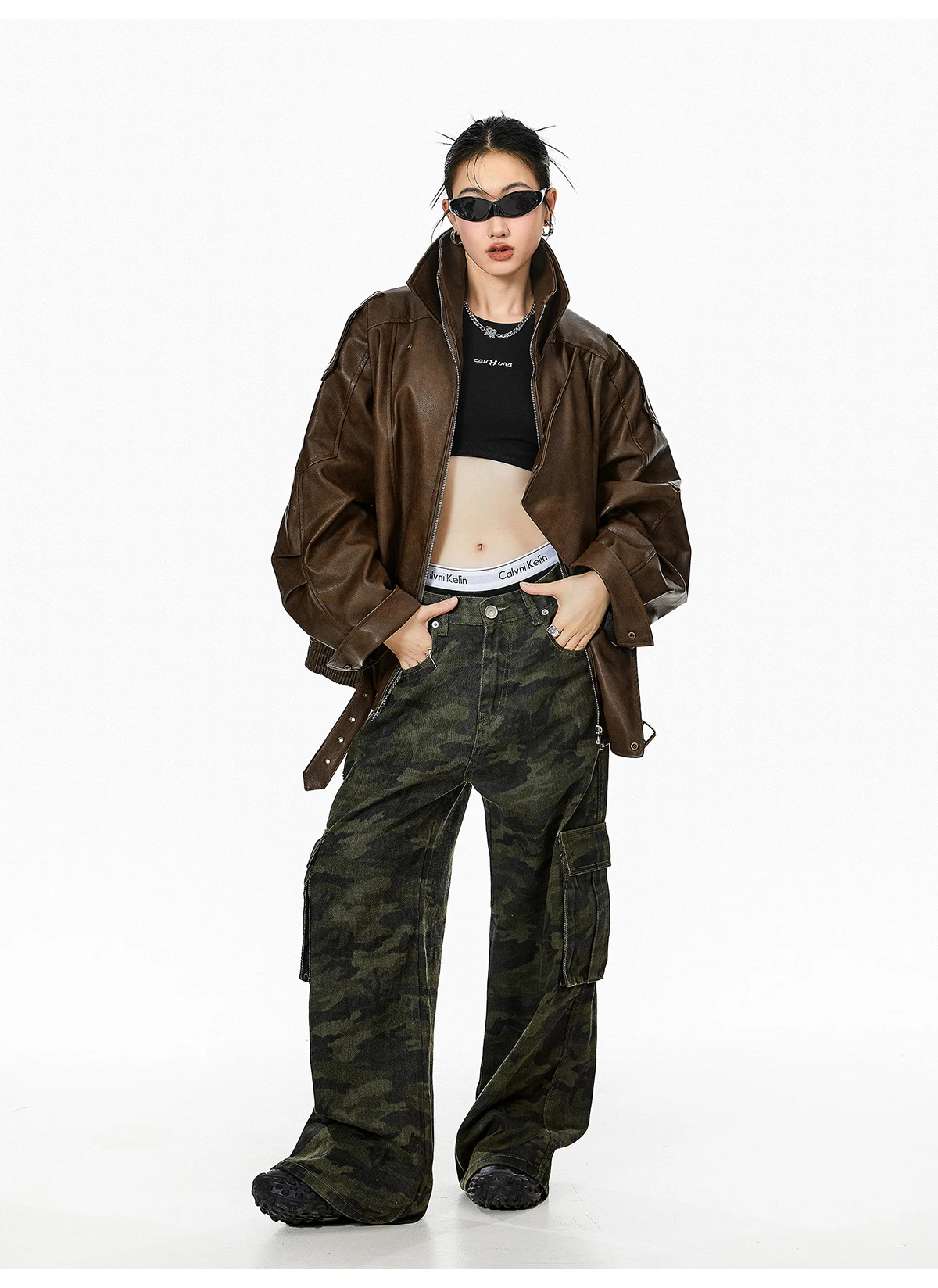 Giacca in pelle da donna Cappotto marrone retrò americano Autunno Inverno Nuova moda Versatile tinta unita Allentato Semplice design irregolare