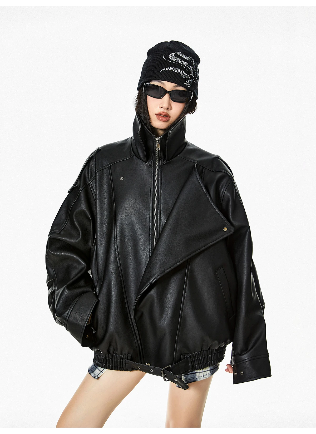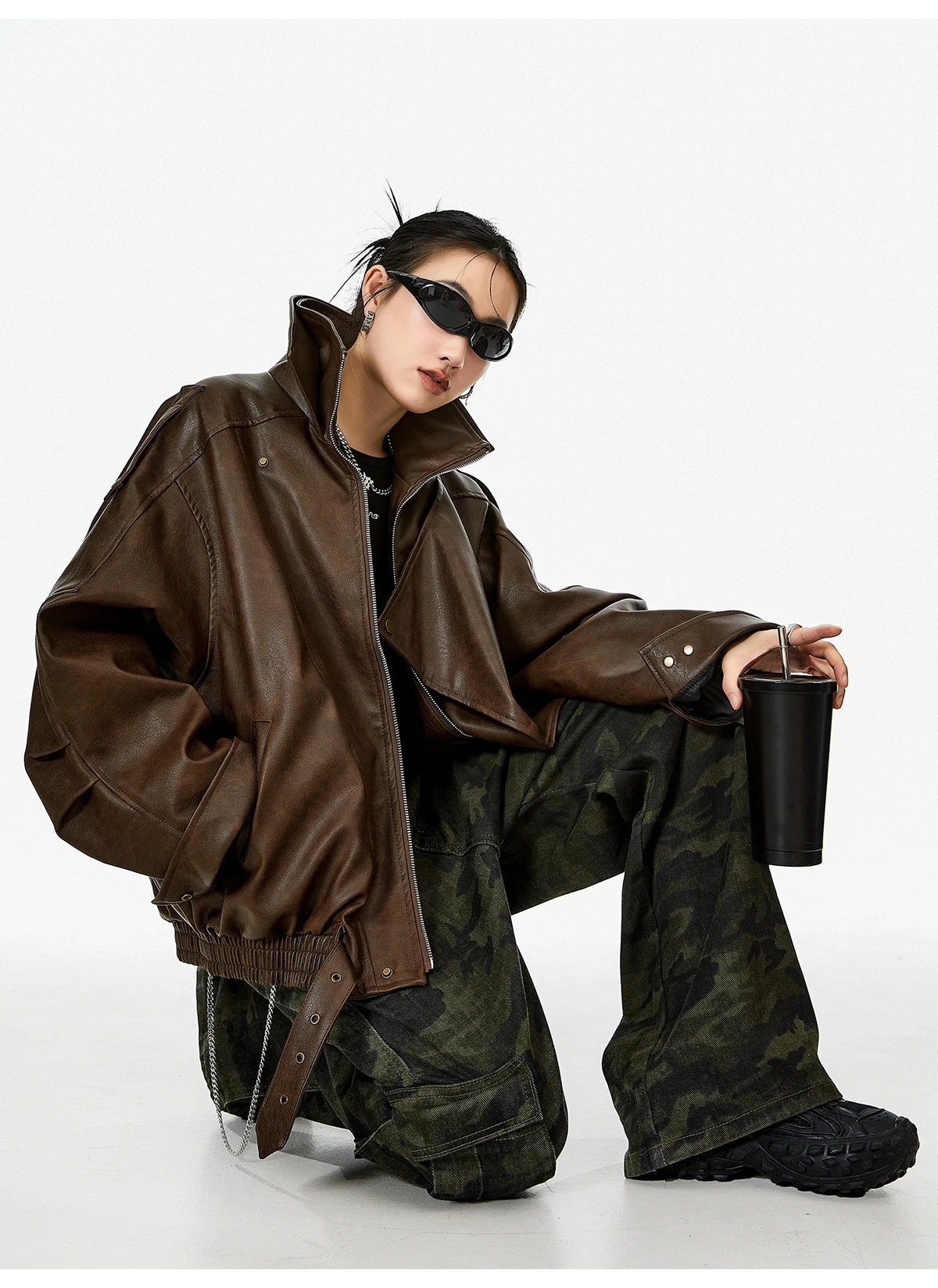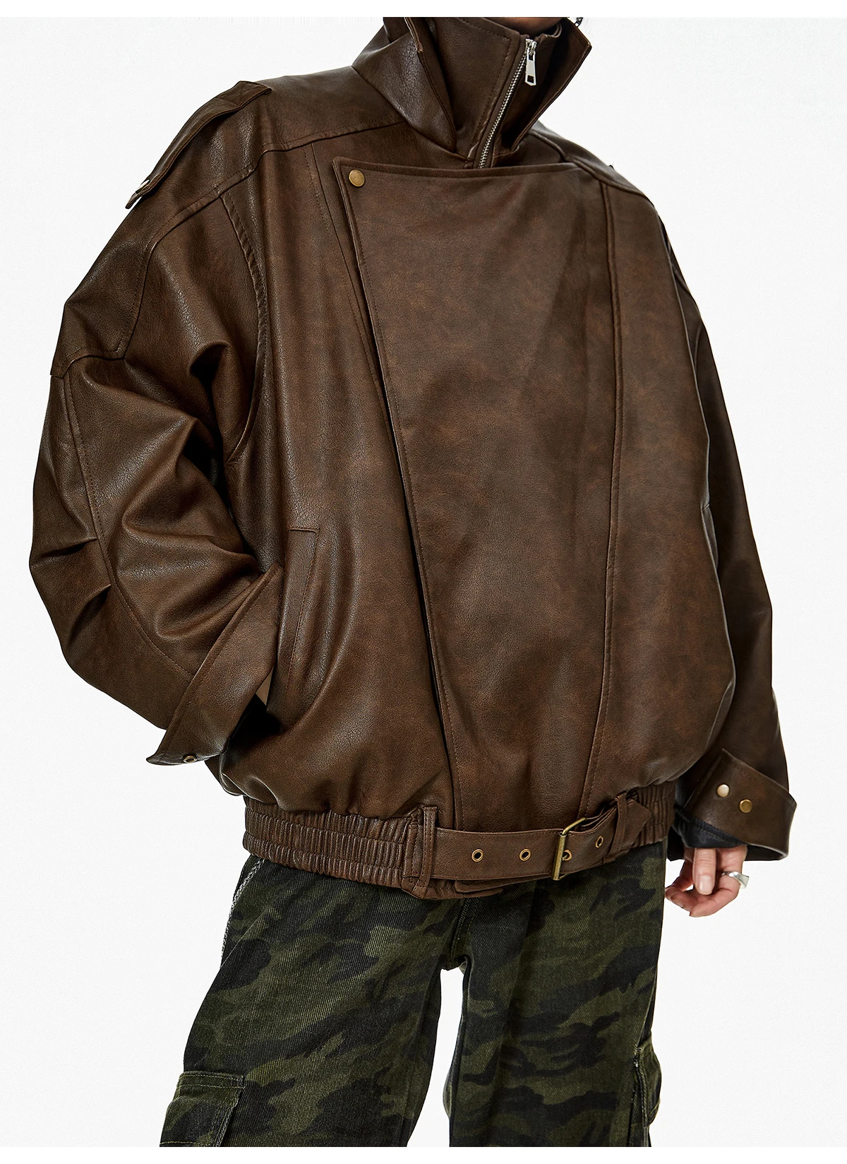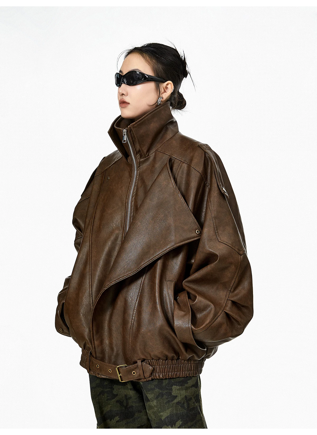 Giacca in pelle da donna Cappotto marrone retrò americano Autunno Inverno Nuova moda Versatile tinta unita Allentato Semplice design irregolare 1Giacca in pelle da donna Cappotto marrone retrò americano Autunno Inverno Nuova moda Versatile tinta unita Allentato Semplice design irregolare