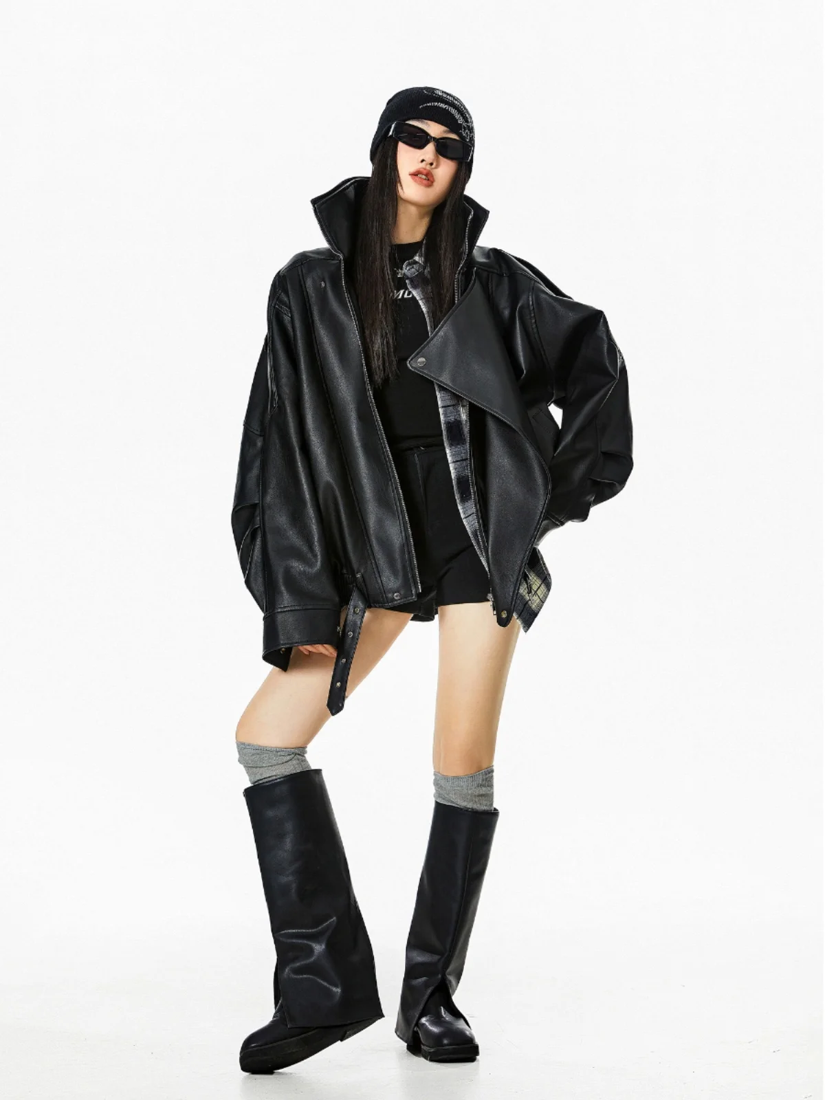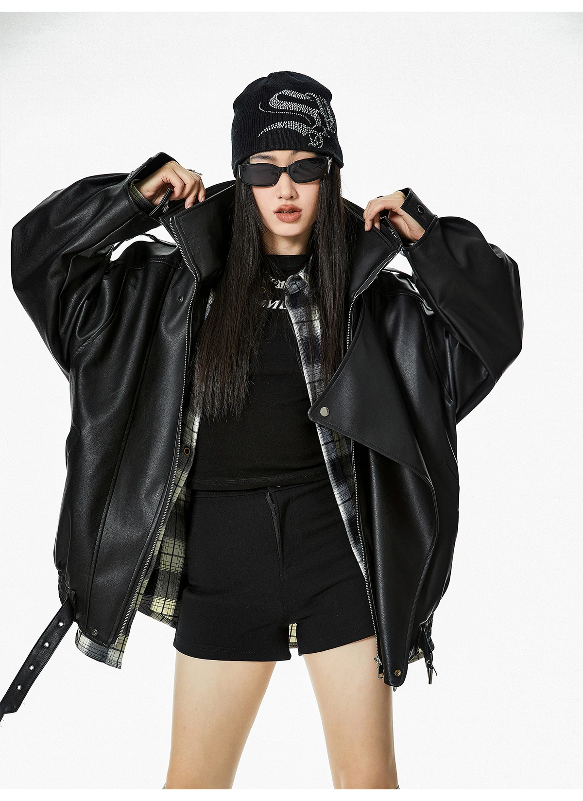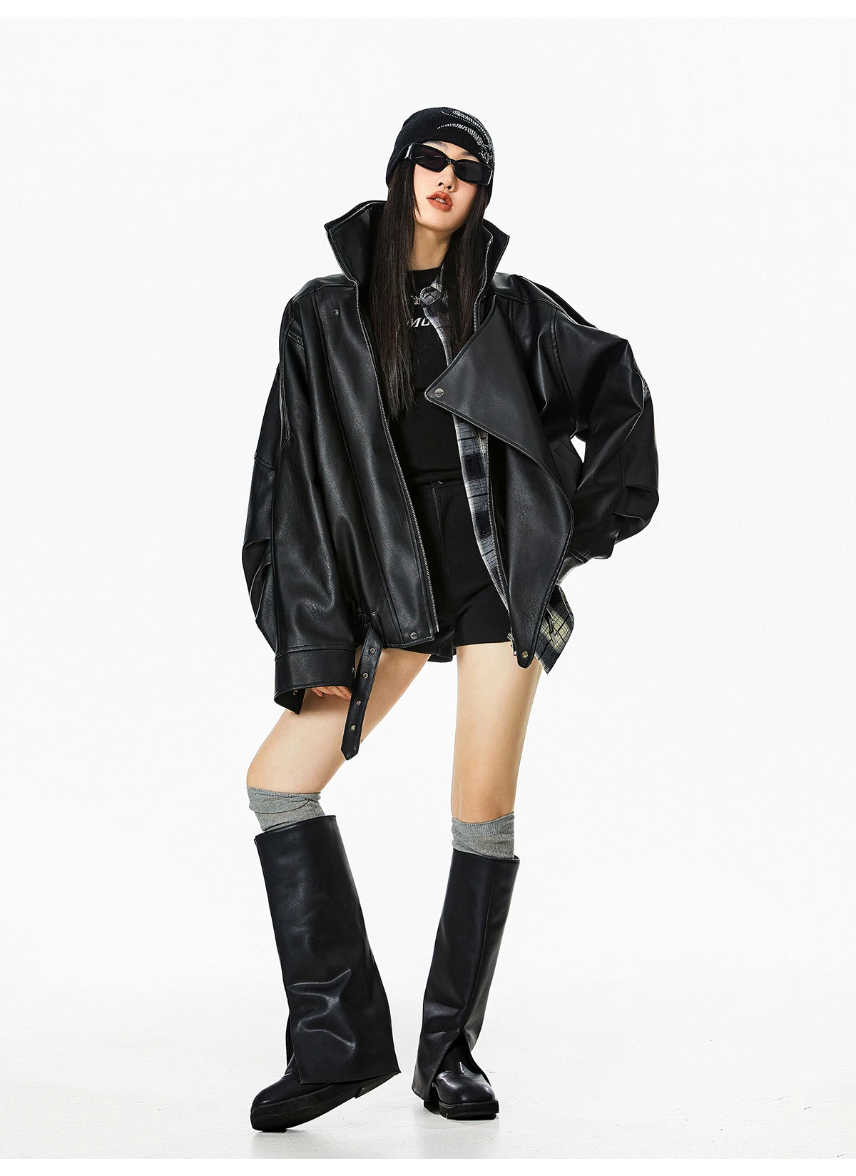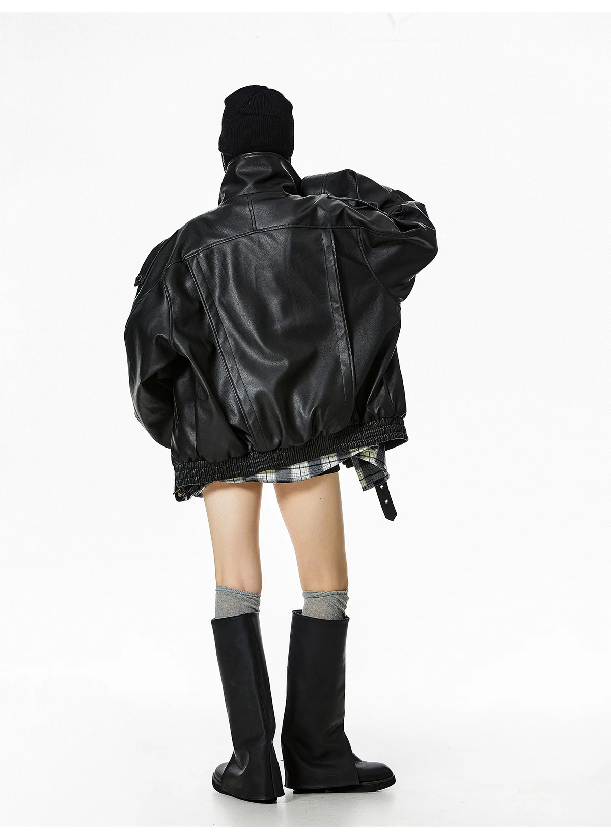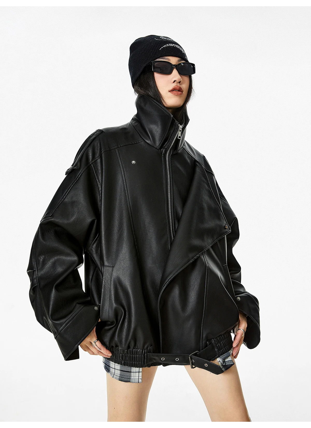 Giacca in pelle da donna Cappotto marrone retrò americano Autunno Inverno Nuova moda Versatile tinta unita Allentato Semplice design irregolare 1Giacca in pelle da donna Cappotto marrone retrò americano Autunno Inverno Nuova moda Versatile tinta unita Allentato Semplice design irregolare
