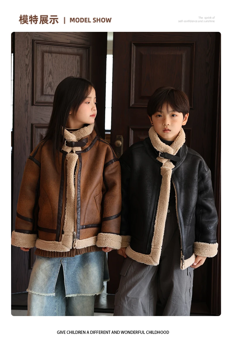 Giacca invernale in pelle di cashmere Mantieni caldo Giacca da ragazzo Fodera spessa con collo in pelliccia di peluche Cappotto per cappotti per ragazze per bambiniColore: nero marroneSULLA TAGLIA:1.Si prega di seguire i dettagli della tabella delle taglie per selezionare la taglia. Potrebbe esserci una differenza di 2-3 cm a causa della misurazione manuale.2.Se incontri difficoltà nella scelta della taglia, non esitare a contattarci, ti daremo qualche suggerimento, ma è solo per riferimento.SULLA COLOREI colori reali degli articoli potrebbero differire leggermente dall’immagine a causa delle luci e dei diversi display del computer.