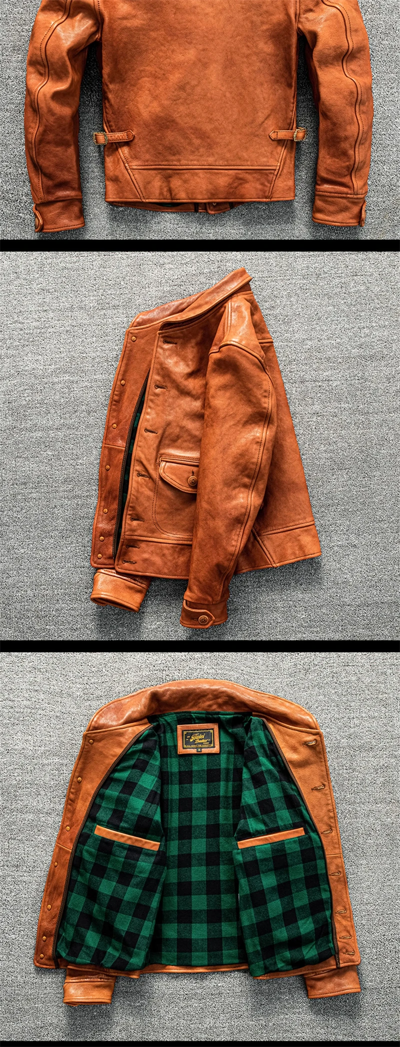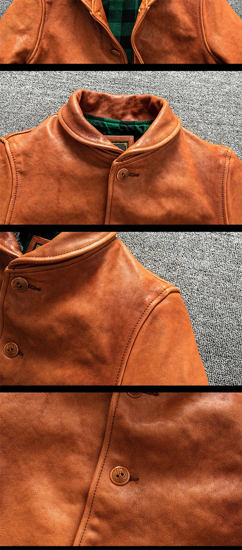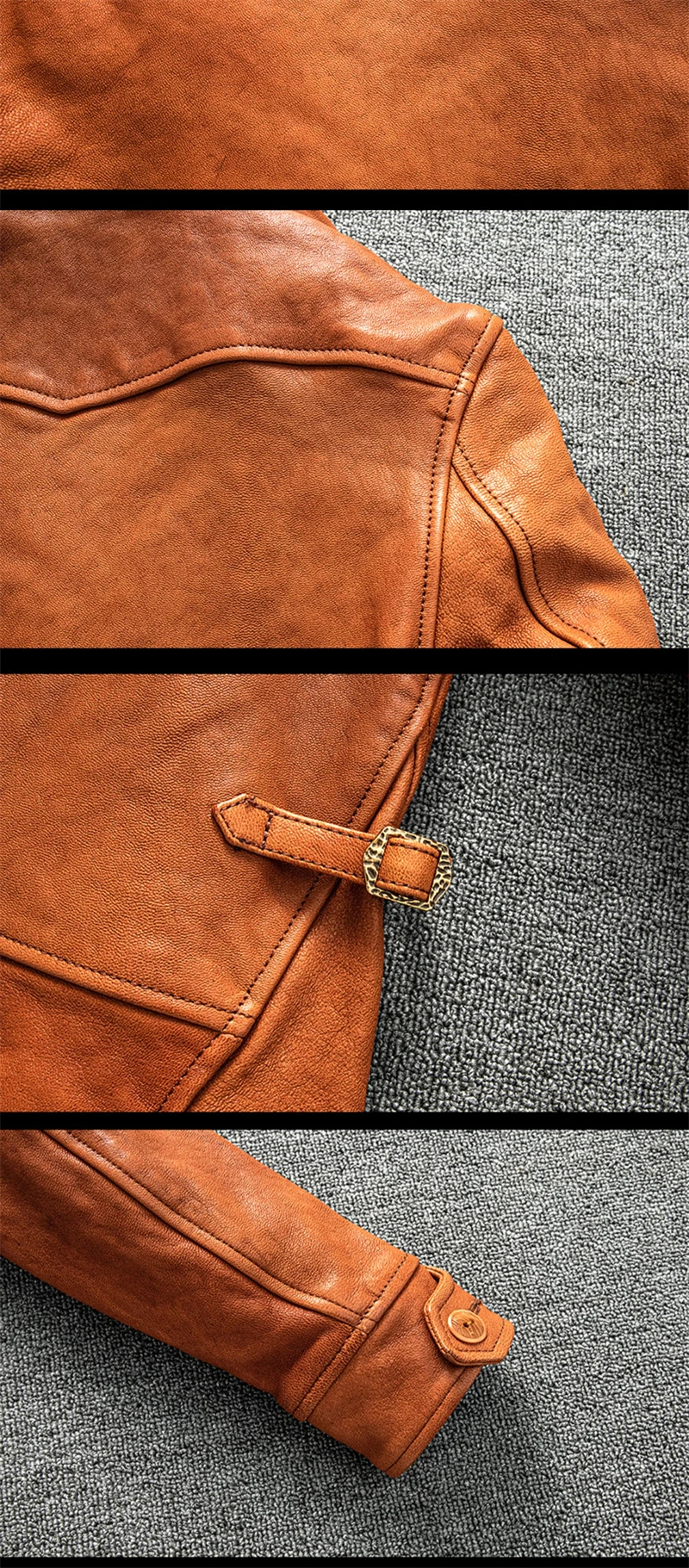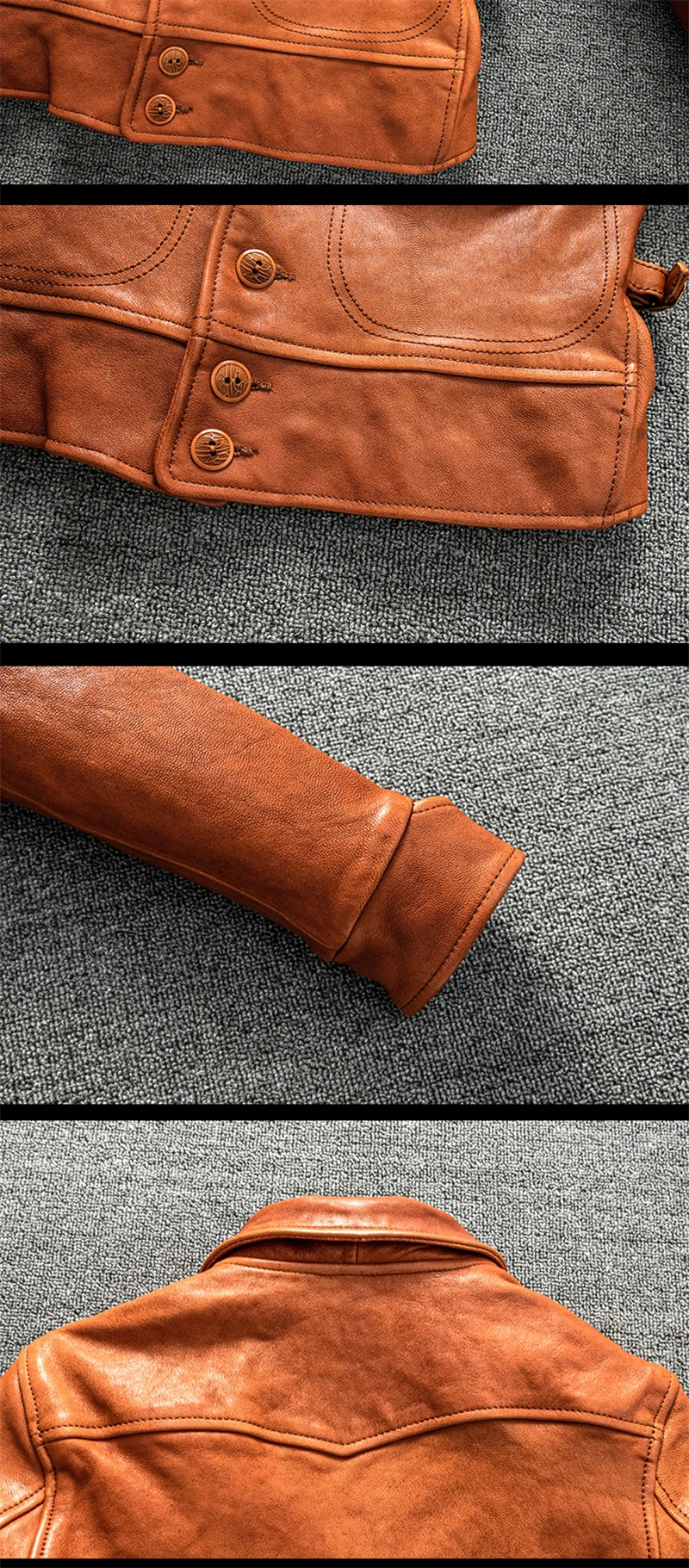 Giacca in pelle primavera arancione uomo giappone stile Casual Plus Size 5XL cappotto corto in vera pelle monopetto in pelle di pecora naturale 1Giacca in pelle primavera arancione uomo giappone stile Casual Plus Size 5XL cappotto corto in vera pelle monopetto in pelle di pecora naturale