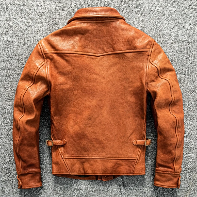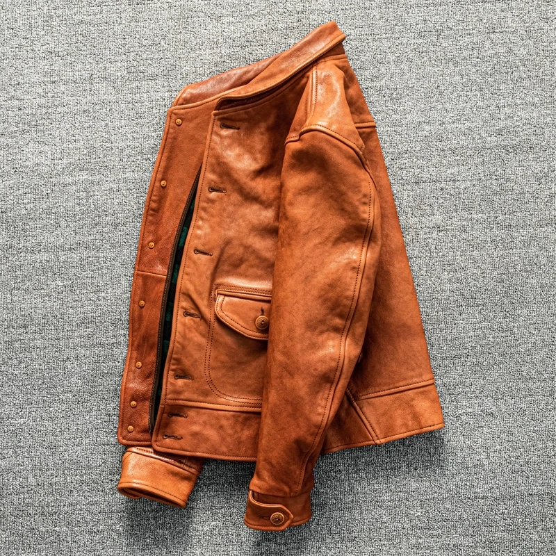 Giacca in pelle primavera arancione uomo giappone stile Casual Plus Size 5XL cappotto corto in vera pelle monopetto in pelle di pecora naturale 1Giacca in pelle primavera arancione uomo giappone stile Casual Plus Size 5XL cappotto corto in vera pelle monopetto in pelle di pecora naturale
