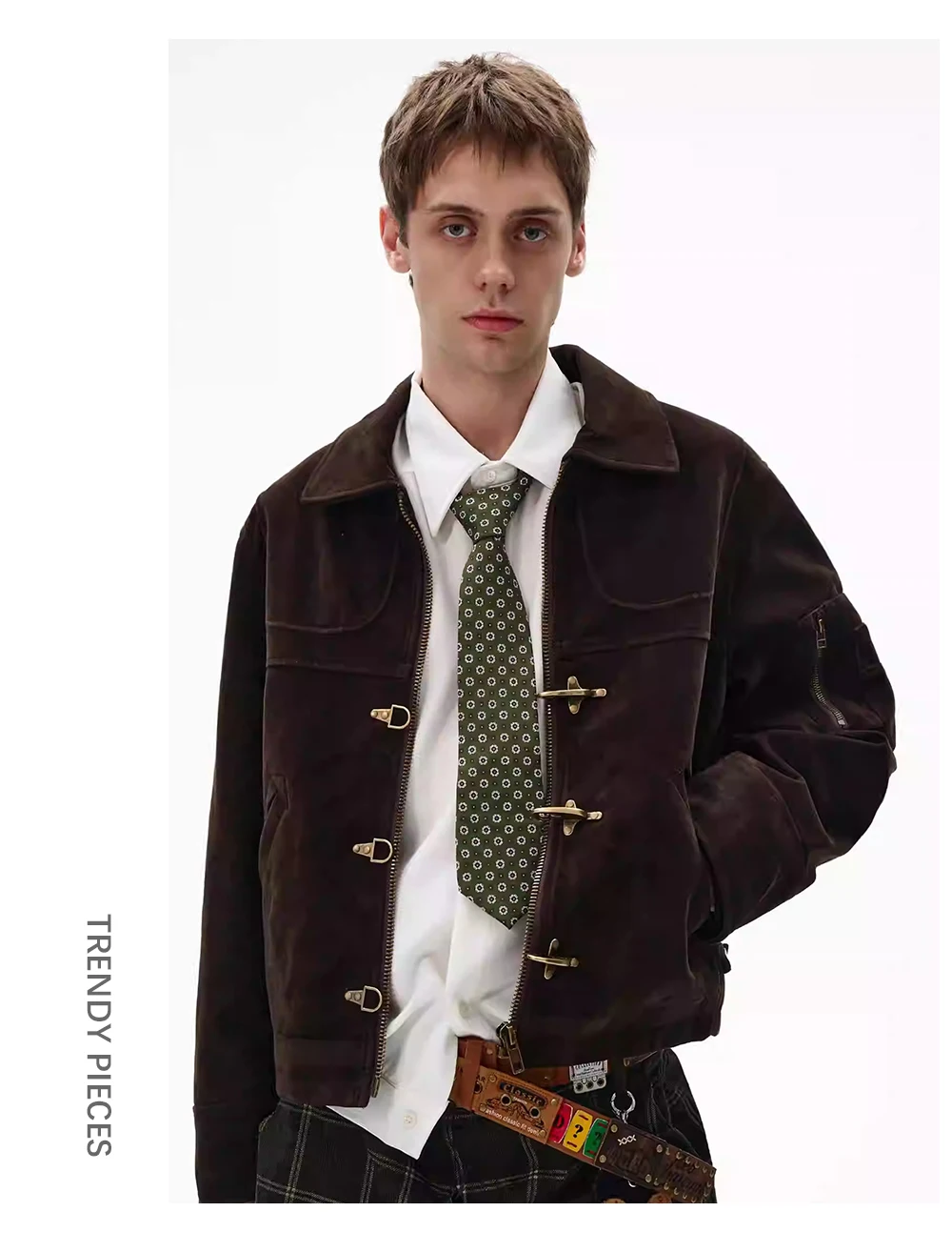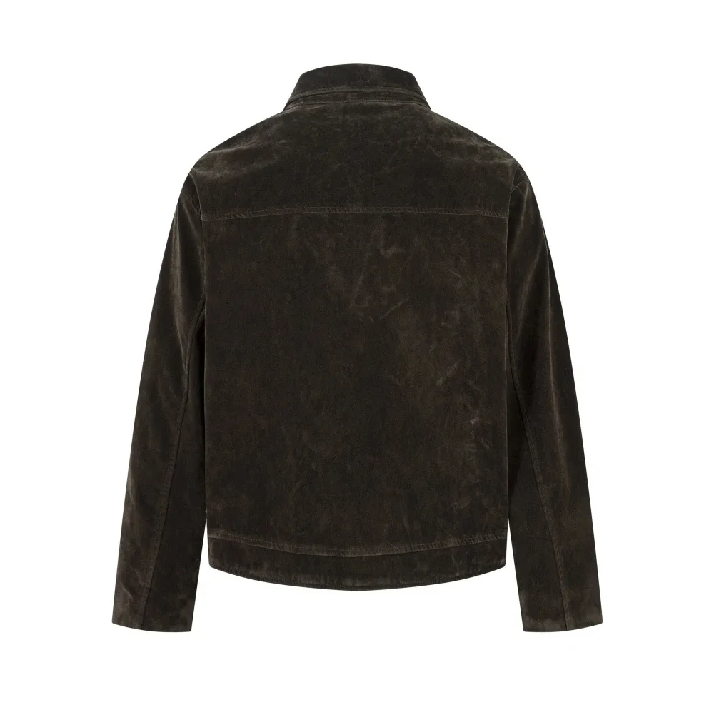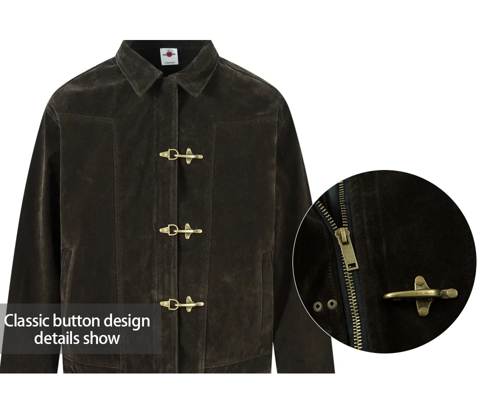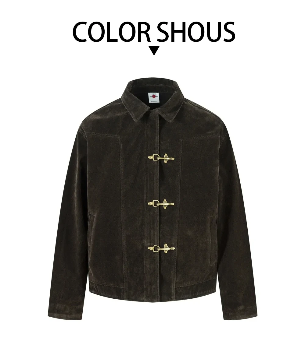 Giacca in pelle scamosciata con giunture retrò Decorazione con bottoni da uomo Autunno Inverno Capispalla allentato a maniche lunghe con risvolto retrò