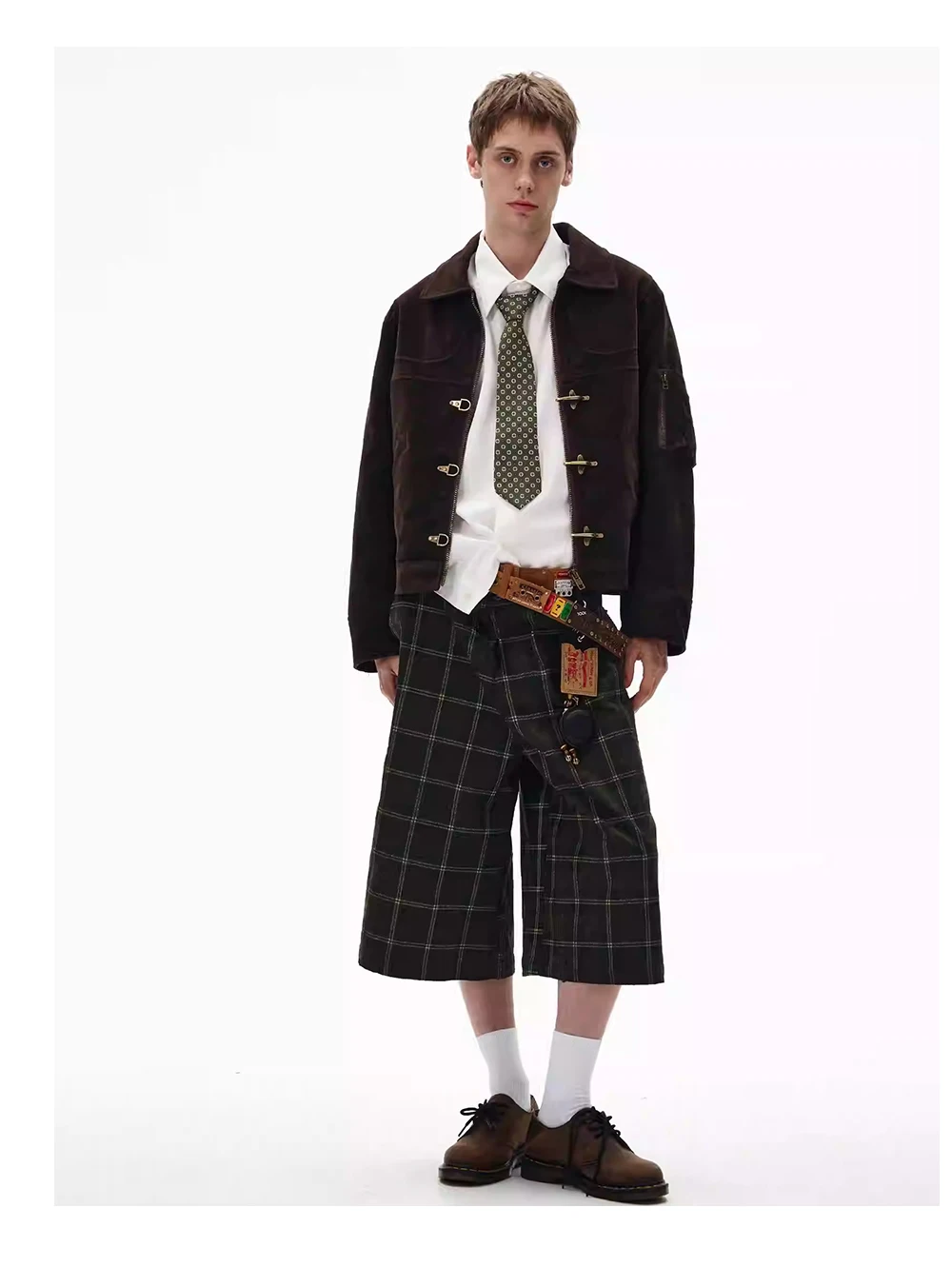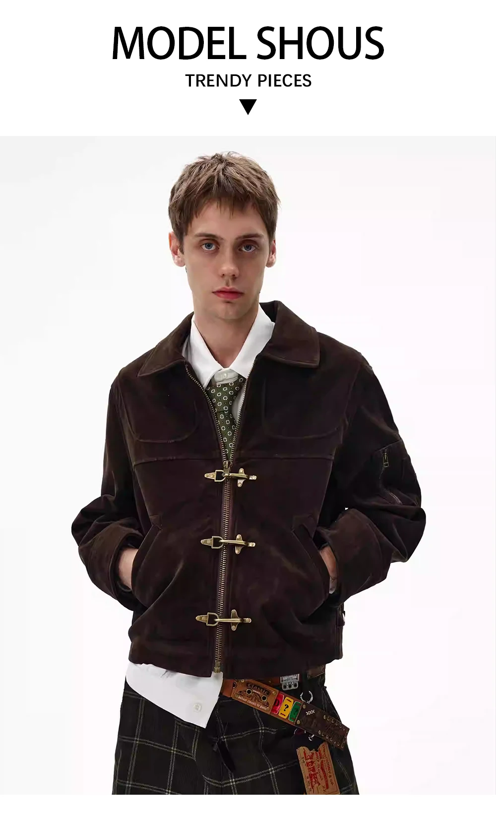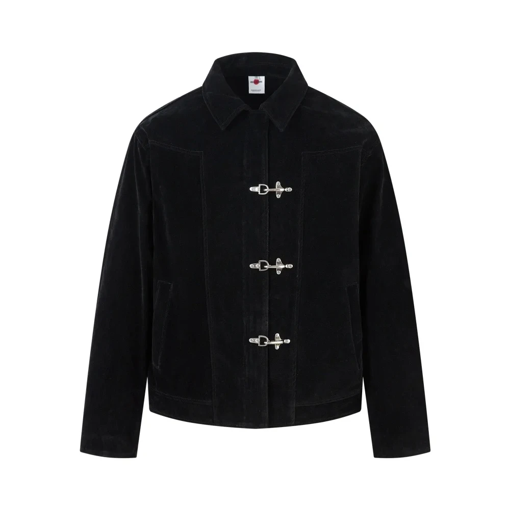 Giacca in pelle scamosciata con giunture retrò Decorazione con bottoni da uomo Autunno Inverno Capispalla allentato a maniche lunghe con risvolto retrò