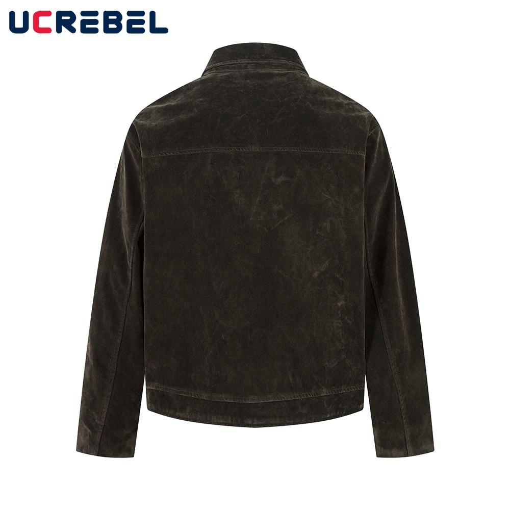 Giacca in pelle scamosciata con giunture retrò Decorazione con bottoni da uomo Autunno Inverno Capispalla allentato a maniche lunghe con risvolto retrò