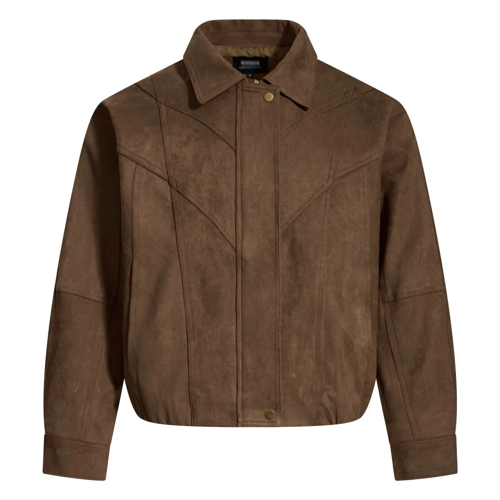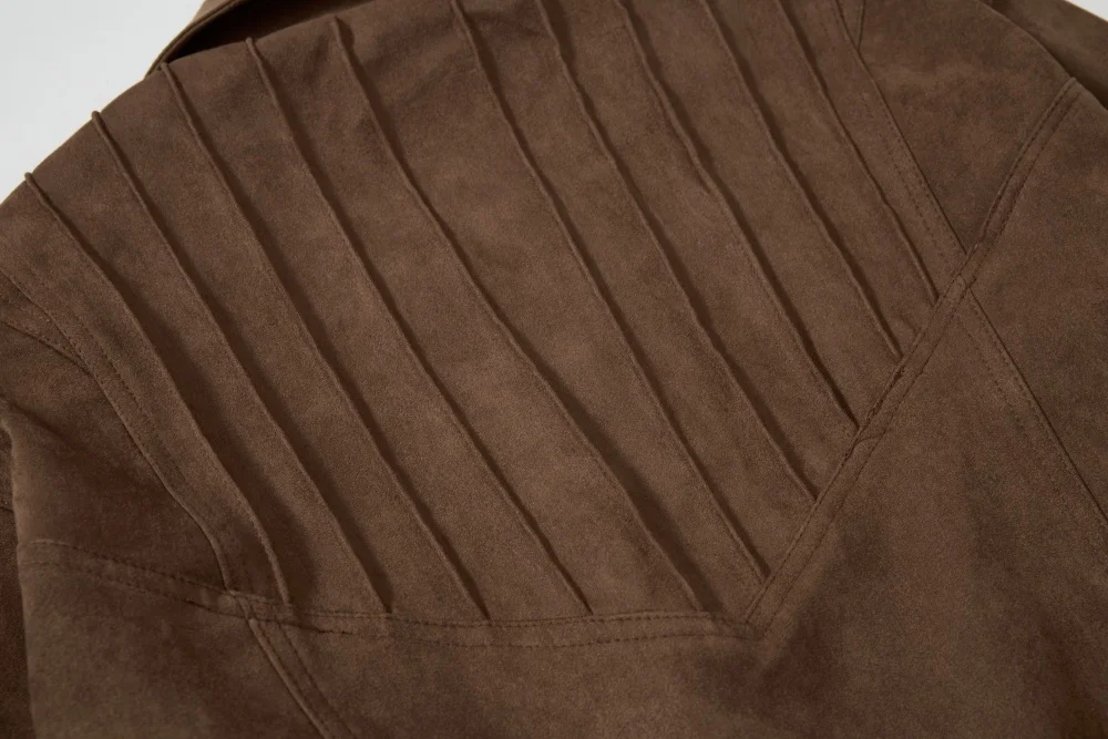 Giacca in pelle scamosciata impiombata retrò da uomo autunno inverno casual risvolto allentato manica lunga cerniera capispalla uomo