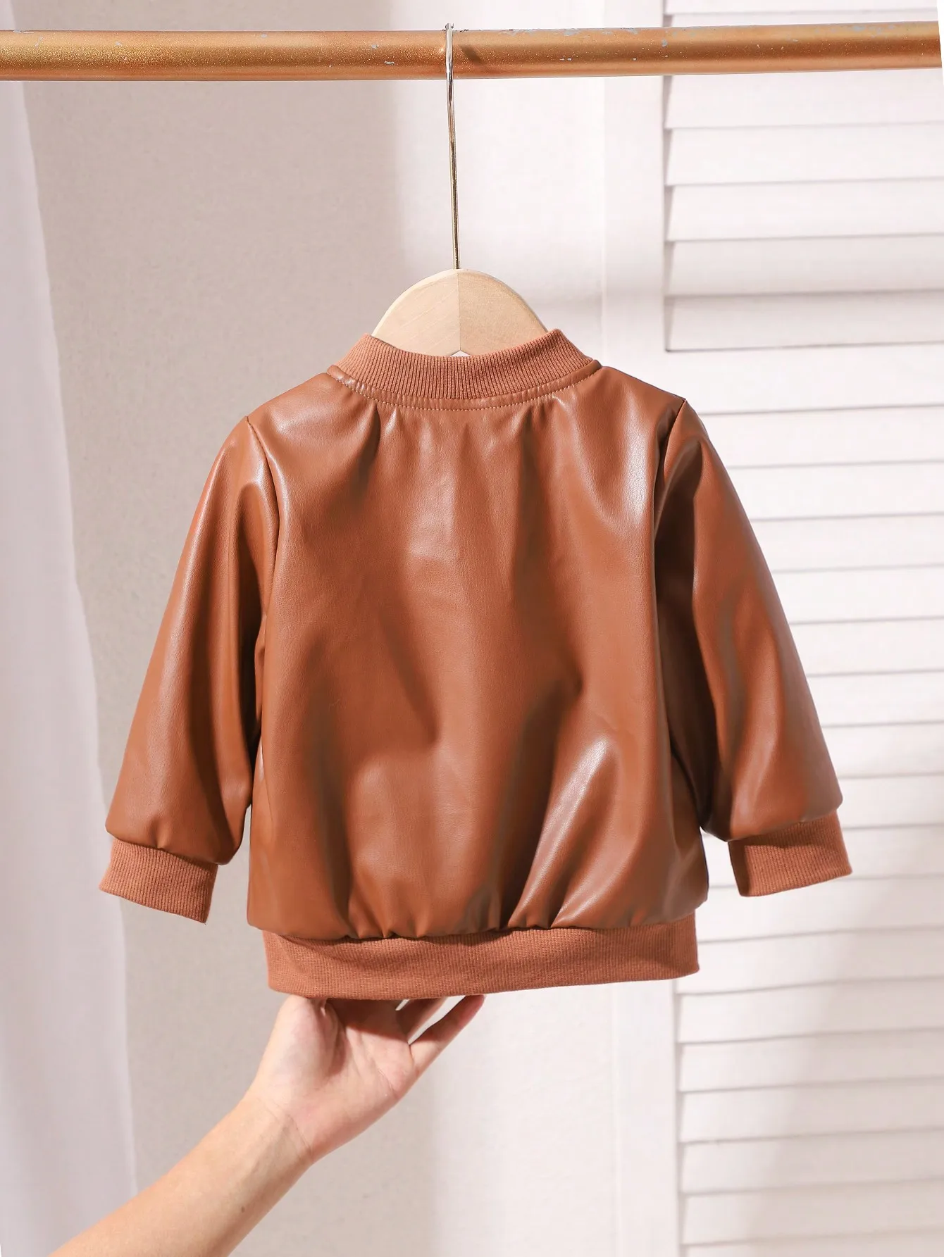 Giacca in pelle stile street per neonato autunno e inverno Cappotto morbido e in pile caldo marrone caffè alla moda