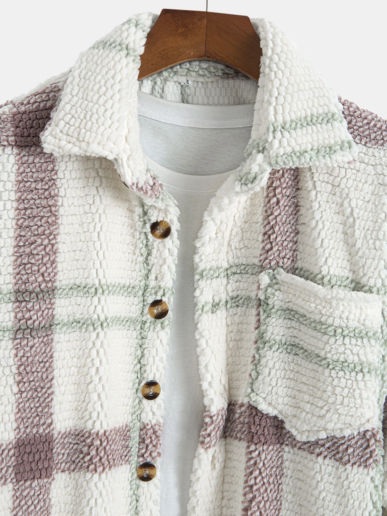Giacca in pile da uomo con stampa scozzese a maniche lunghe con bottoni automatici e giacche casual calde capispalla 2025