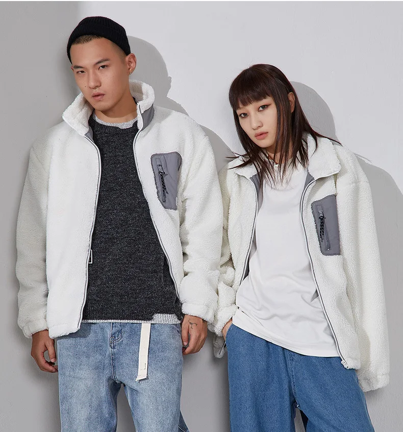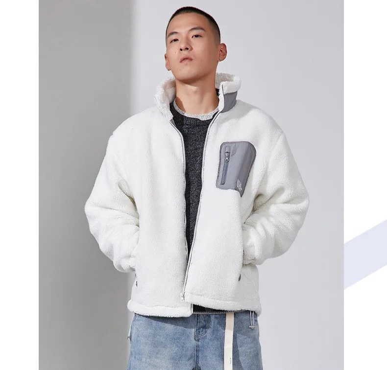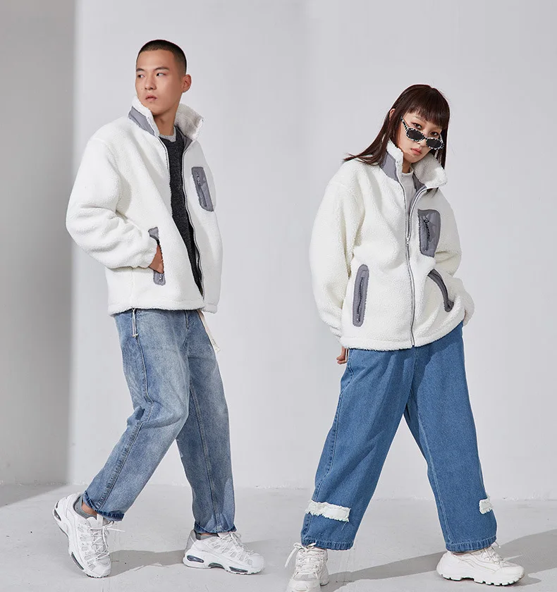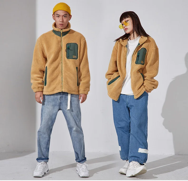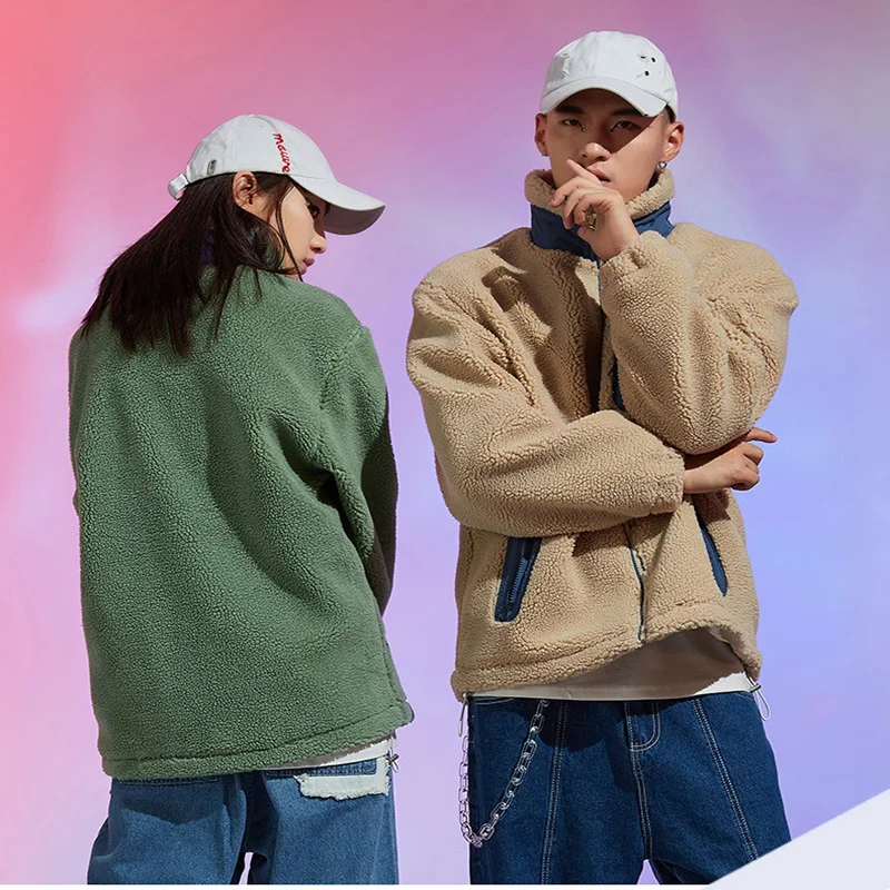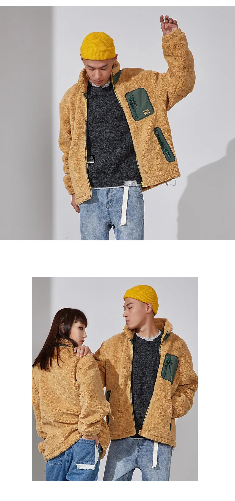Giacca in pile di agnello da esterno uomo donna colletto alla coreana Cardigan cappotto autunno e inverno sciolto capispalla coppia