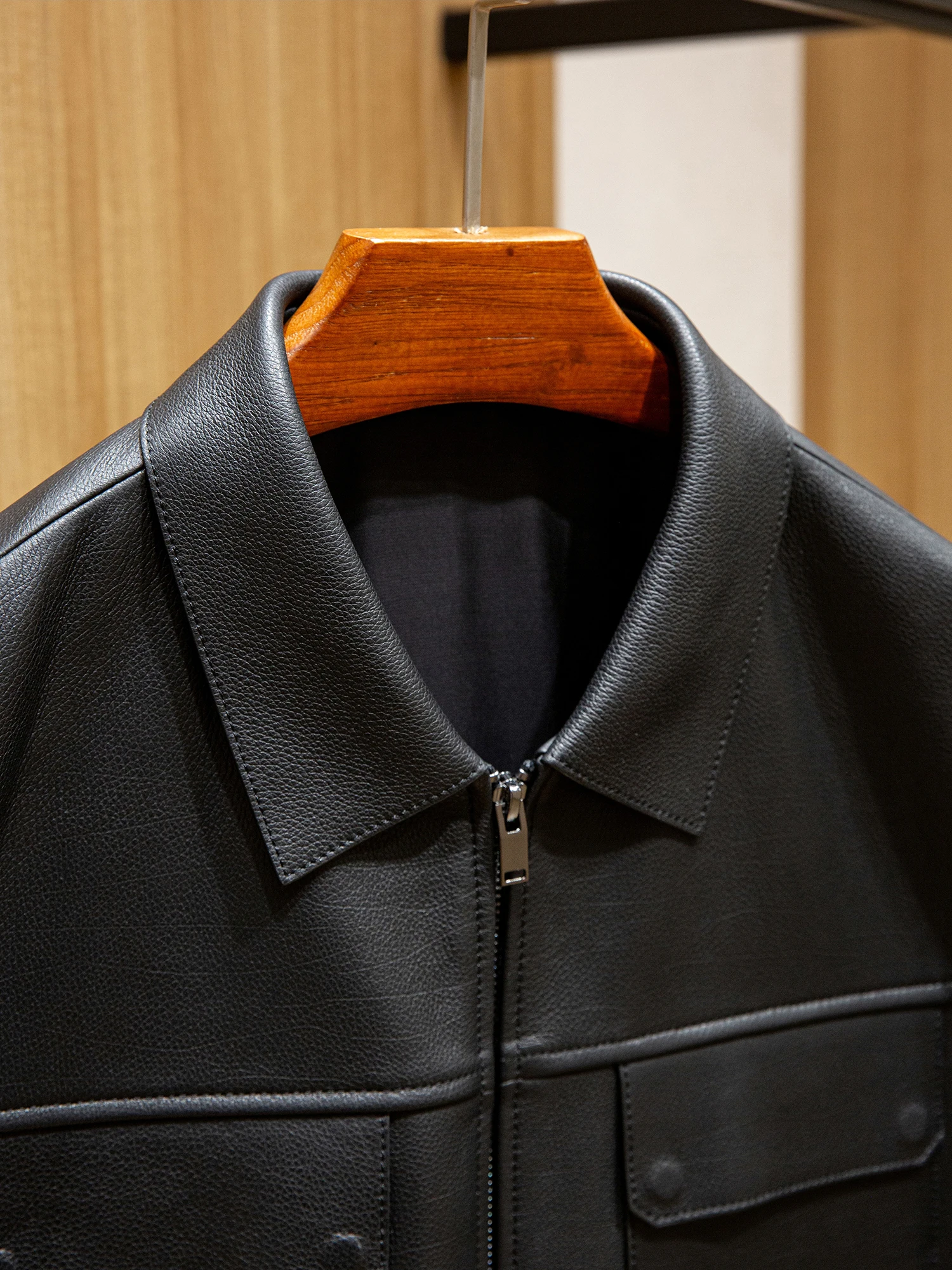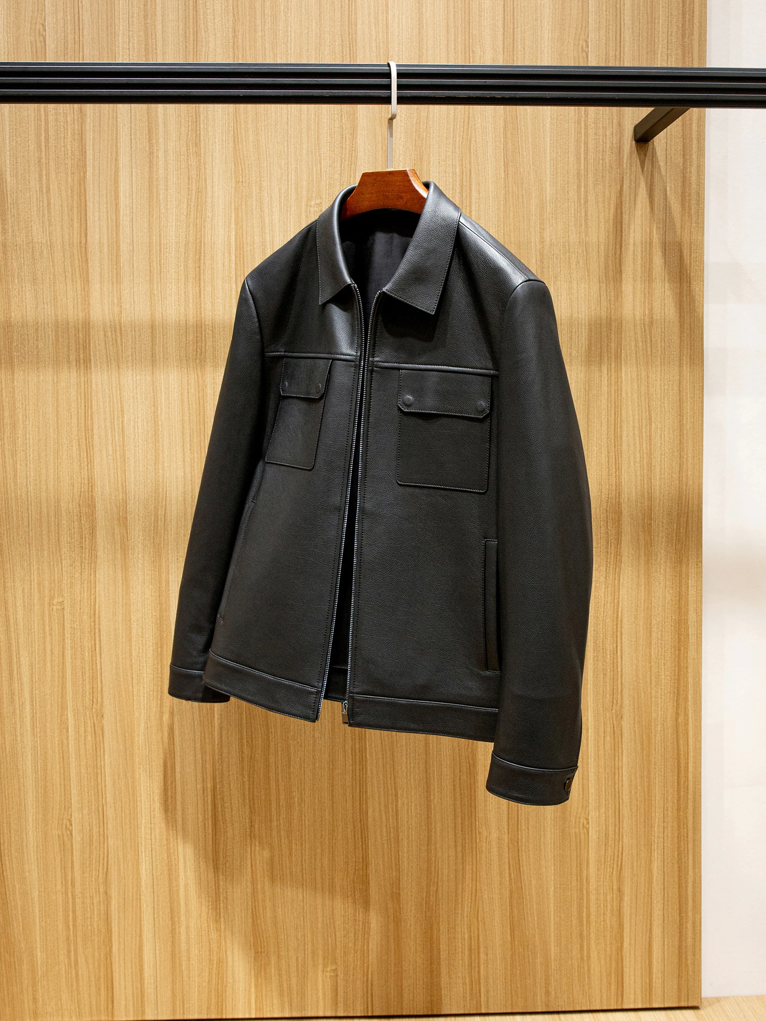 Giacca in vera pelle con risvolto sottile per cappotto in pelle da uomo di lusso leggero in pelle di pecora da uomo d’affari