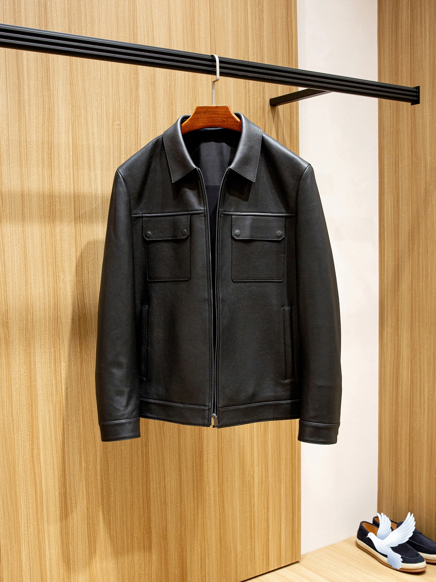 Giacca in vera pelle con risvolto sottile per cappotto in pelle da uomo di lusso leggero in pelle di pecora da uomo d'affari 1Giacca in vera pelle con risvolto sottile per cappotto in pelle da uomo di lusso leggero in pelle di pecora da uomo d’affari