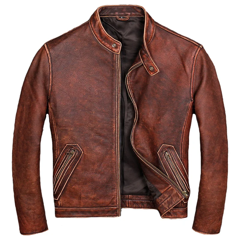 Giacca in vera pelle da uomo moto in vera pelle vintage cappotto in pelle di pecora pelle bovina taglie forti Chaqueta Cuero Hombre 1906