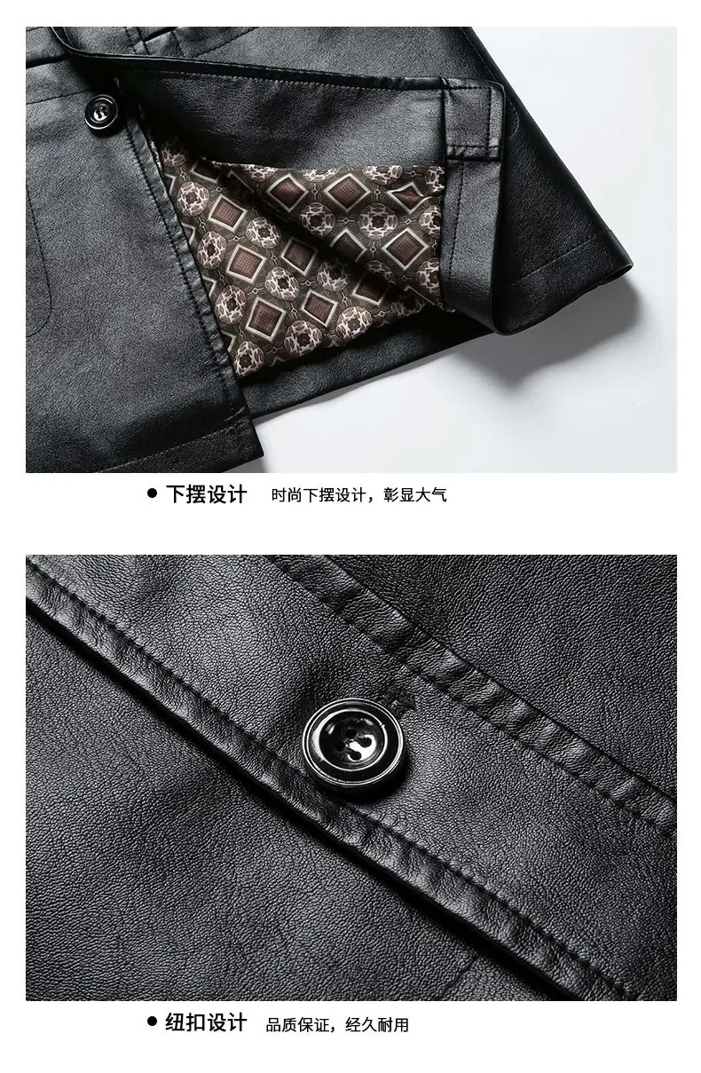 Soprabito in pelle da uomo al ginocchio di alta qualità per l’autunno e l’inverno giacca a vento da lavoro doppiopetto cappotti in pelle PU-026