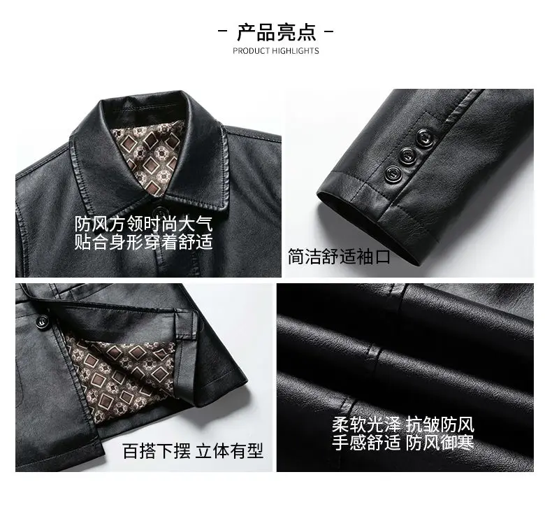 Giacca da uomo in pelle Autunno Inverno Giacche autentiche Abbigliamento da uomo Cappotti lunghi e caldi in peluche Trench frangivento moda casual