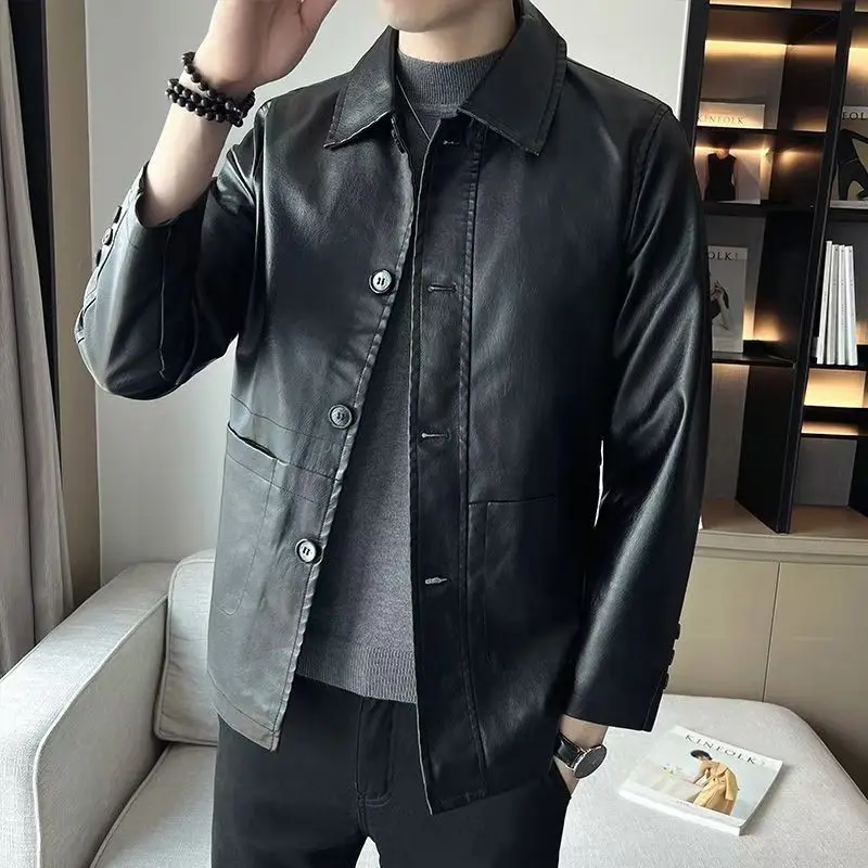 Abito da uomo in pelle PU nera, giacca in pelle, bordeaux, blu scuro, giacca in pelle terrosa, taglia asiatica M-4XL
