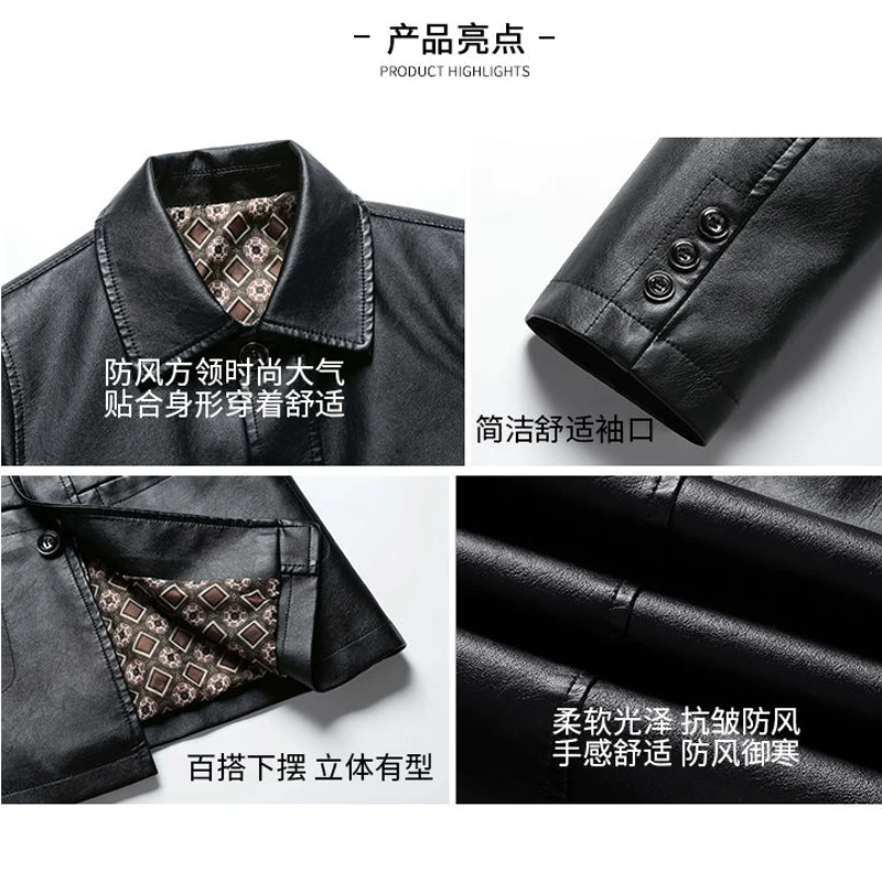 Giacca da uomo in pelle Autunno Inverno Giacche autentiche Abbigliamento da uomo Cappotti lunghi e caldi in peluche Trench frangivento moda casual