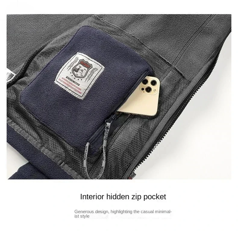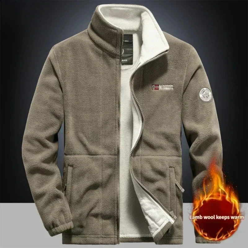 Giacca invernale in pile caldo Giacca da arrampicata con doppia tasca ispessita da uomo Collo alto da esterno Felpa da sci antivento Cappotto da uomo