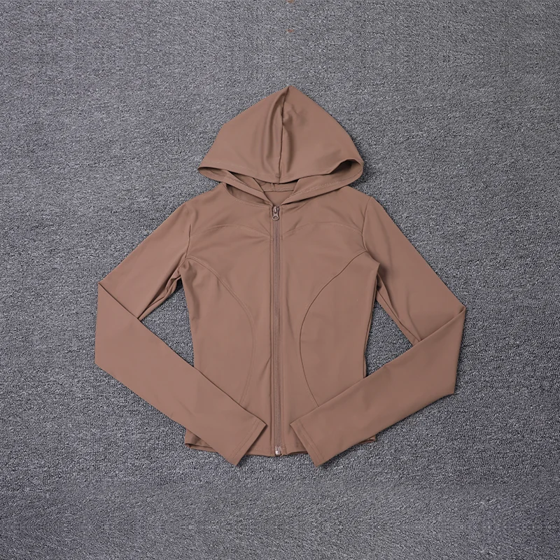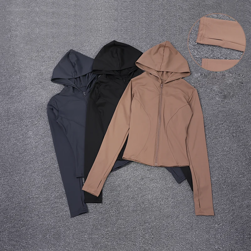 Giacca sportiva con cappuccio da donna Plus Size giacca sportiva da allenamento ad asciugatura rapida giacca sportiva con maniche con Zip senza cuciture