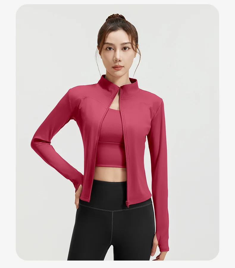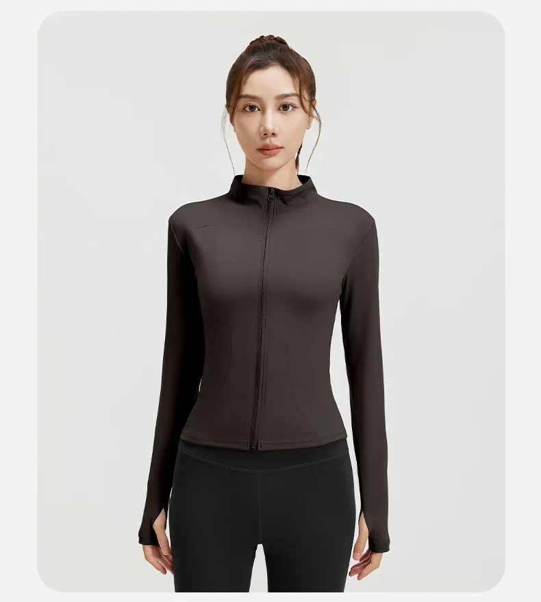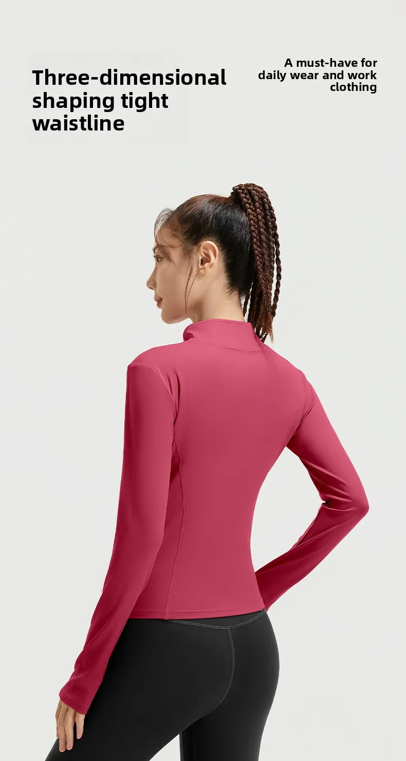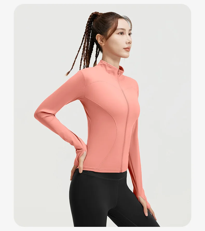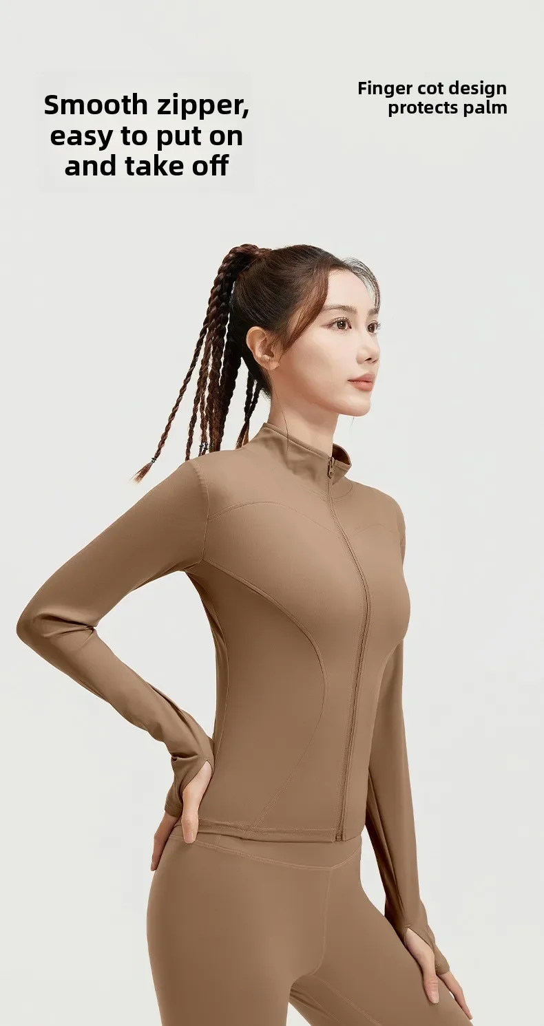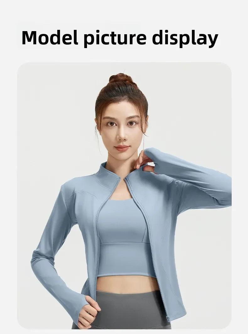 2 recensioni per Giacca sportiva da esterno Corsa Fitness Maniche lunghe Donna Slim Abbigliamento da yoga Cardigan con cerniera ad asciugatura rapida Cappotto skinny con colletto rialzato