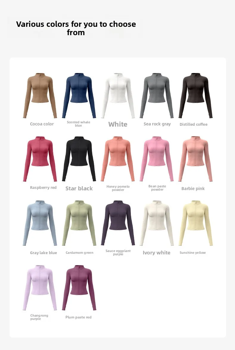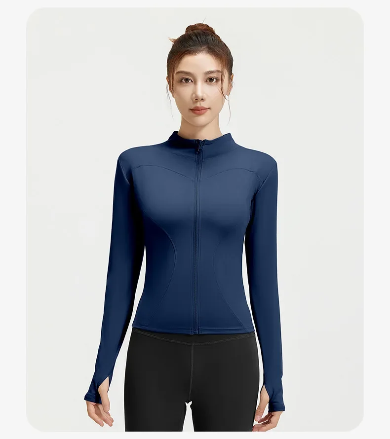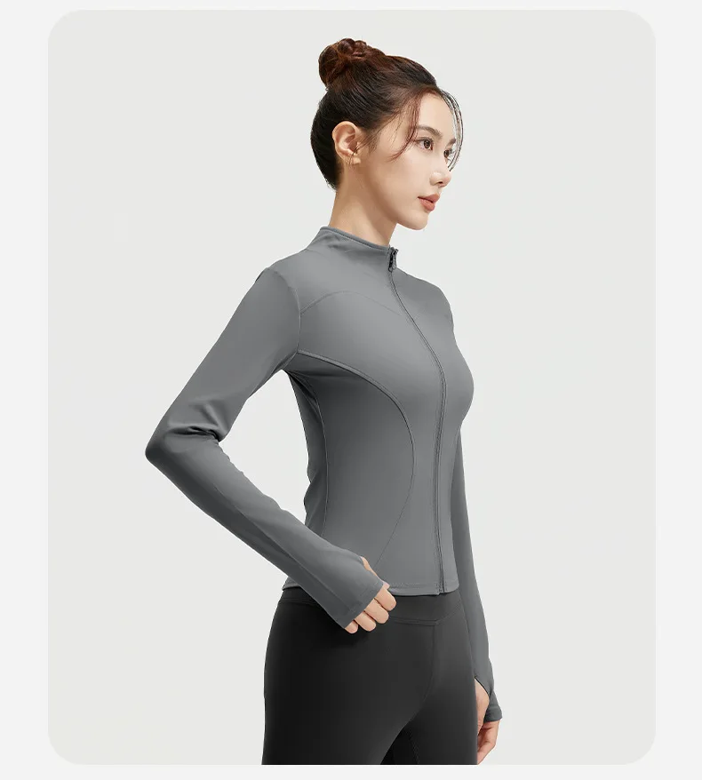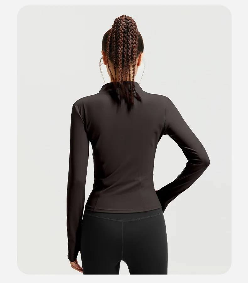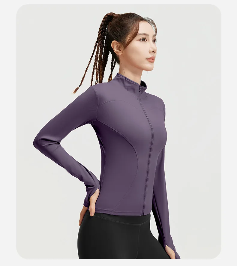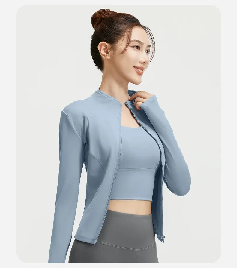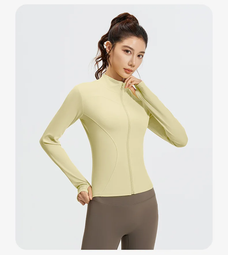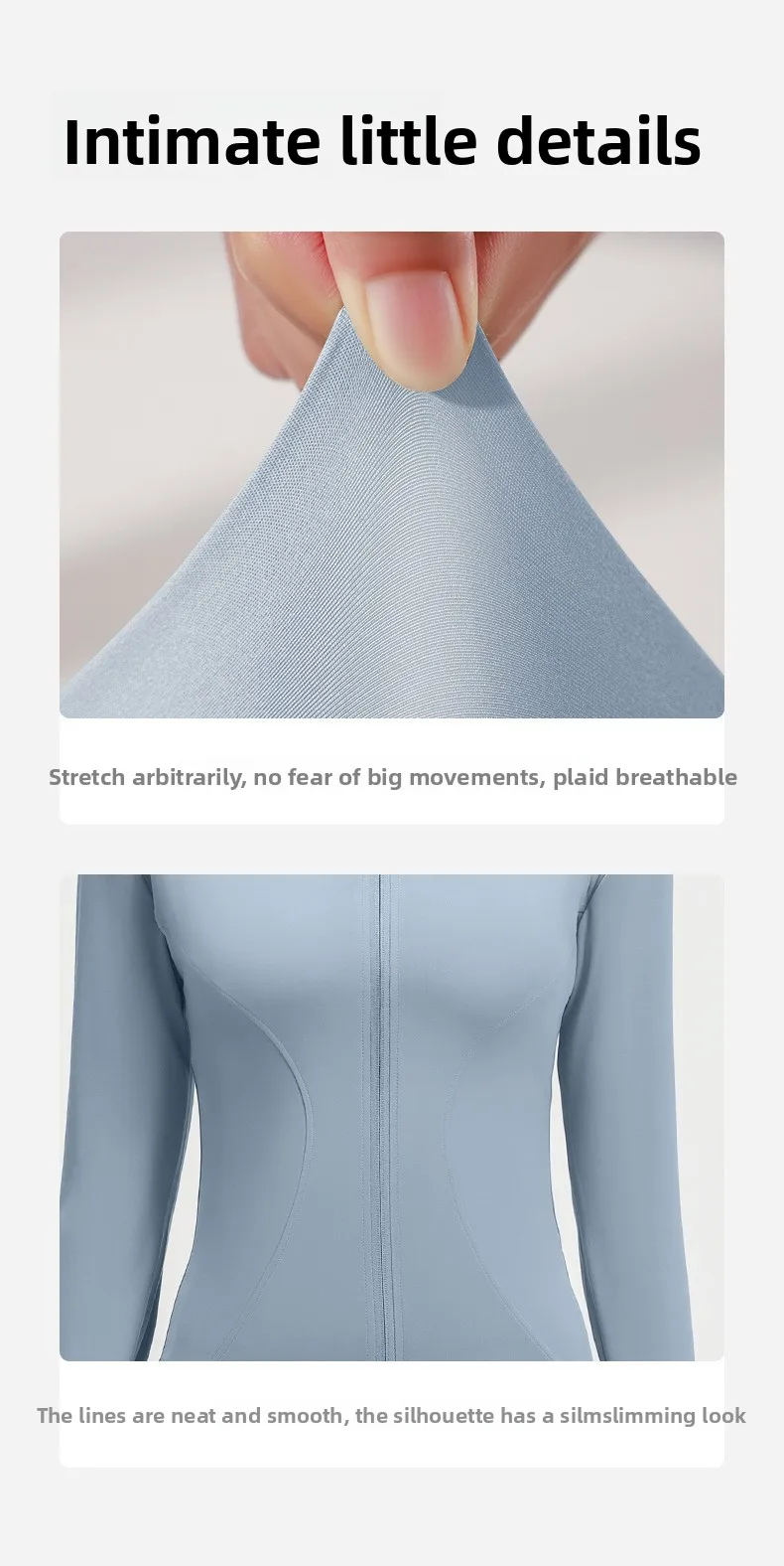 2 recensioni per Giacca sportiva da esterno Corsa Fitness Maniche lunghe Donna Slim Abbigliamento da yoga Cardigan con cerniera ad asciugatura rapida Cappotto skinny con colletto rialzato