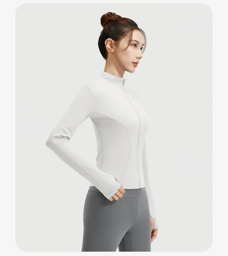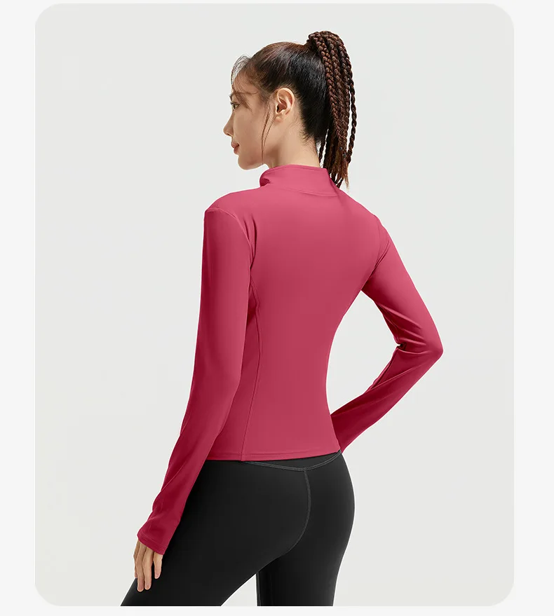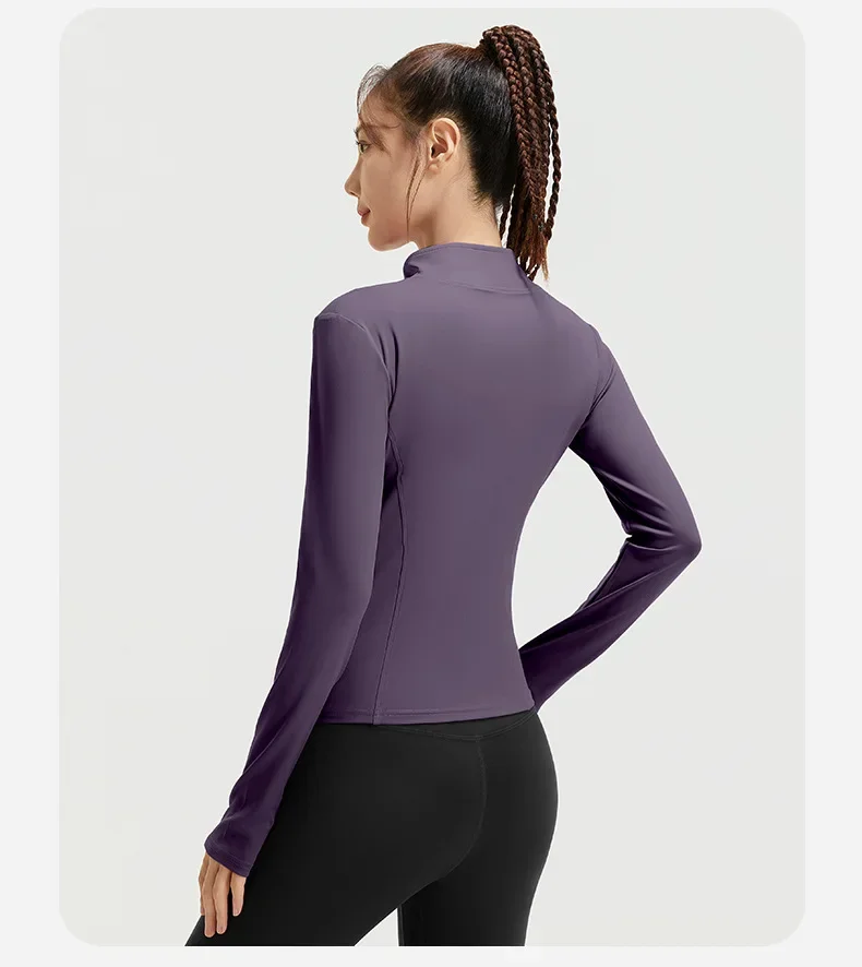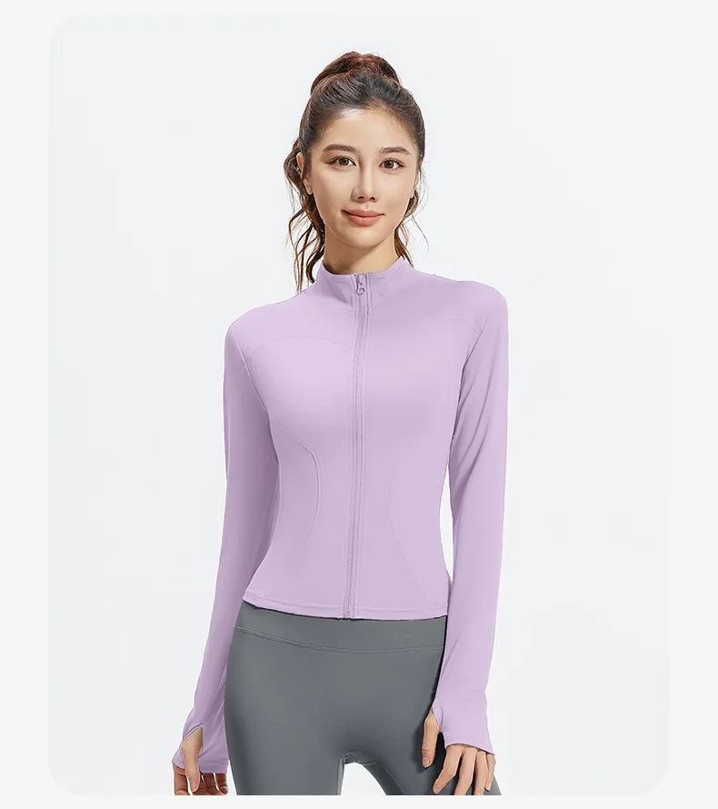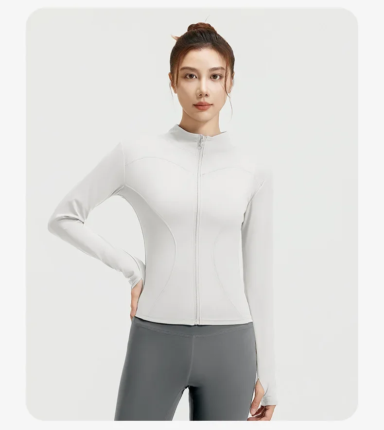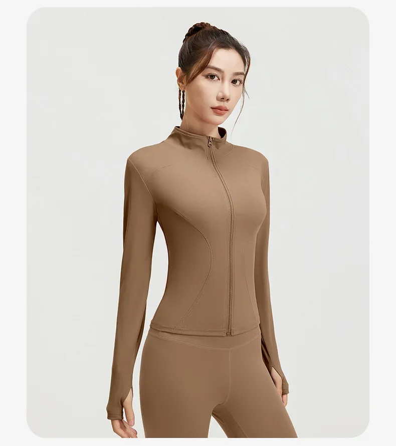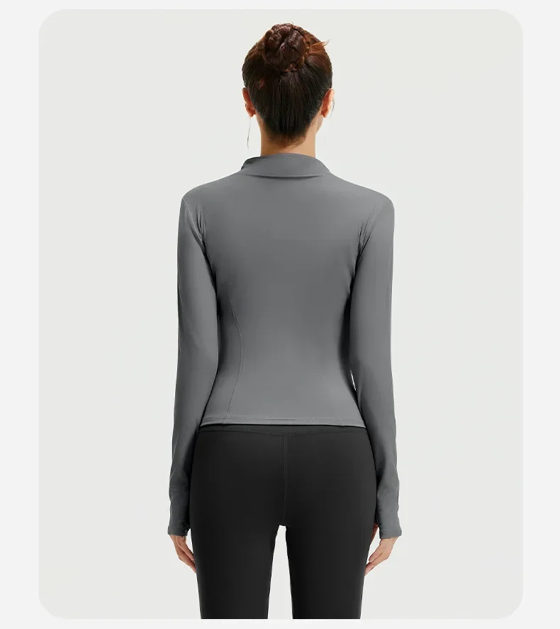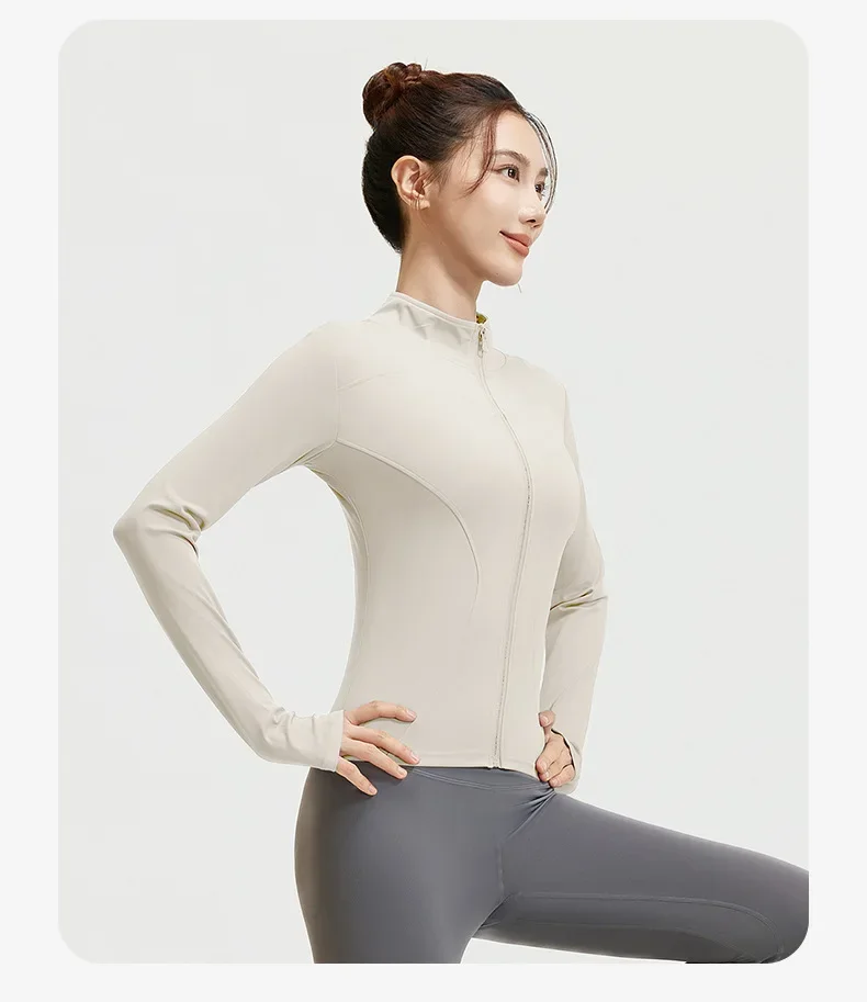 2 recensioni per Giacca sportiva da esterno Corsa Fitness Maniche lunghe Donna Slim Abbigliamento da yoga Cardigan con cerniera ad asciugatura rapida Cappotto skinny con colletto rialzato