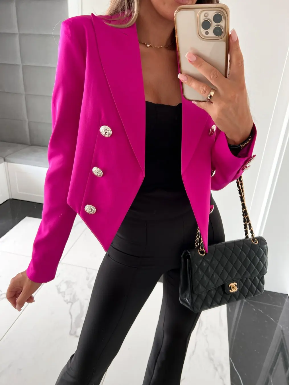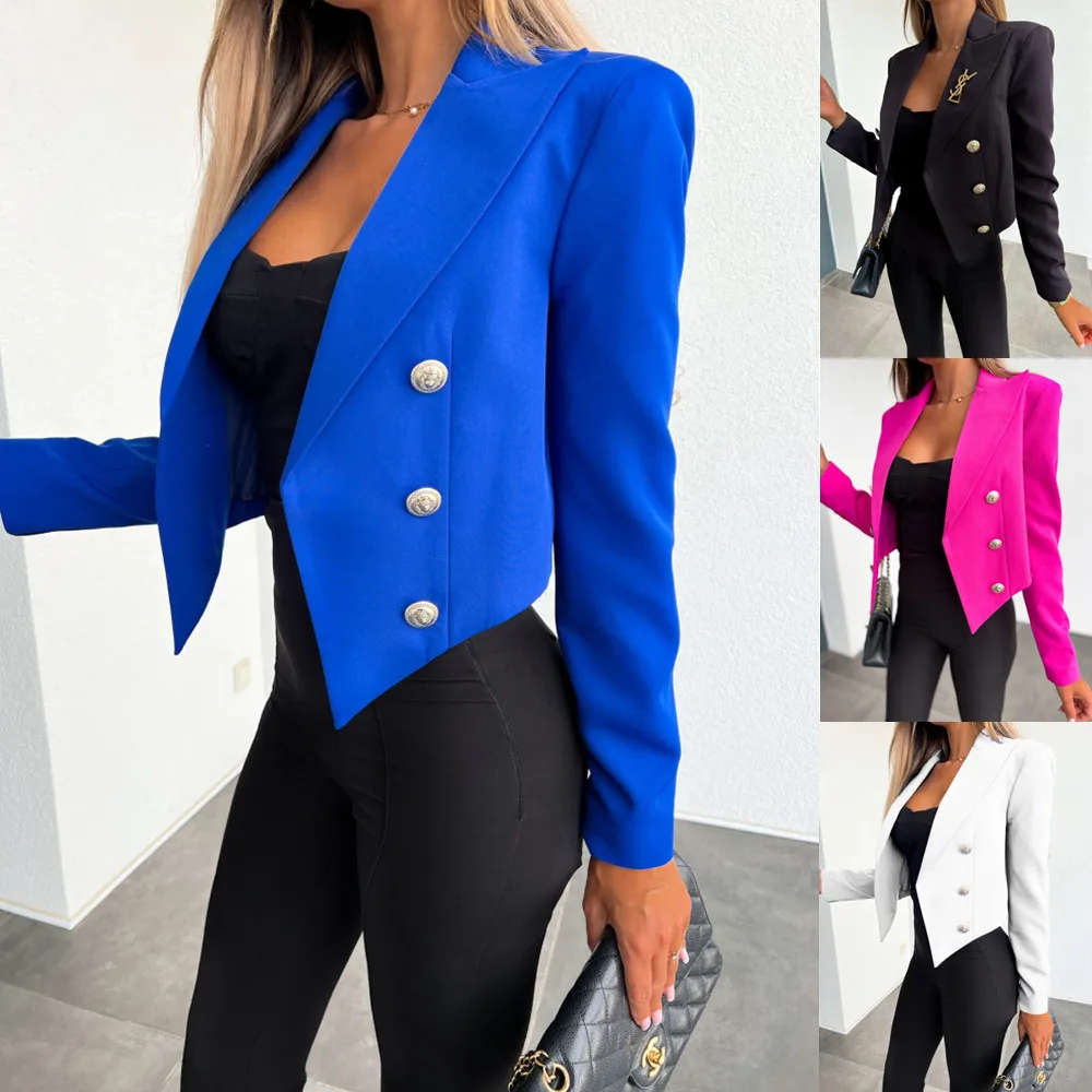 Giacca sportiva doppiopetto a maniche lunghe con risvolto tinta unita per la moda femminile, nuova collezione autunno/inverno 2025