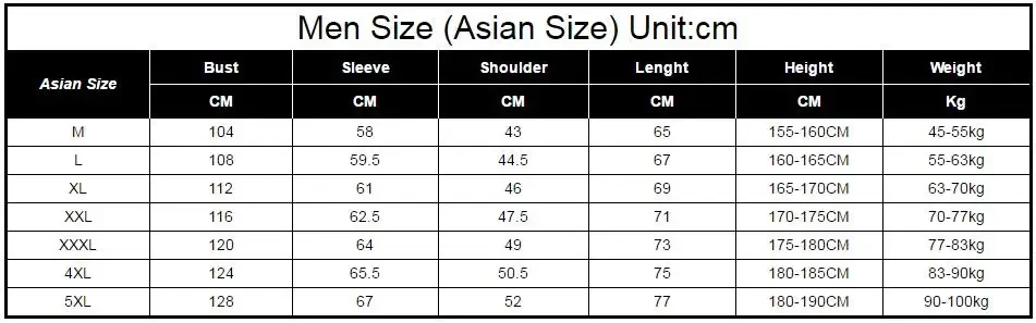 Asiatico SizeBustSleeveShoulderLenghtHeightWeight