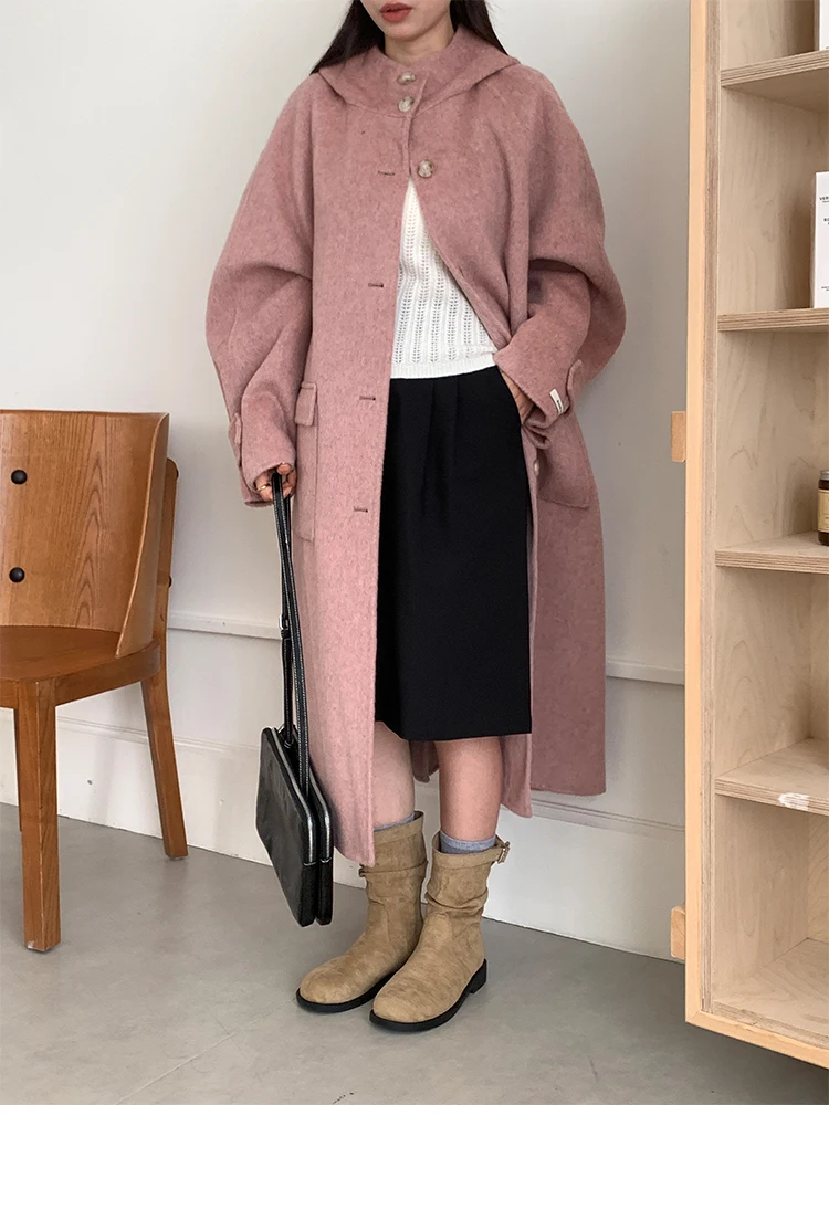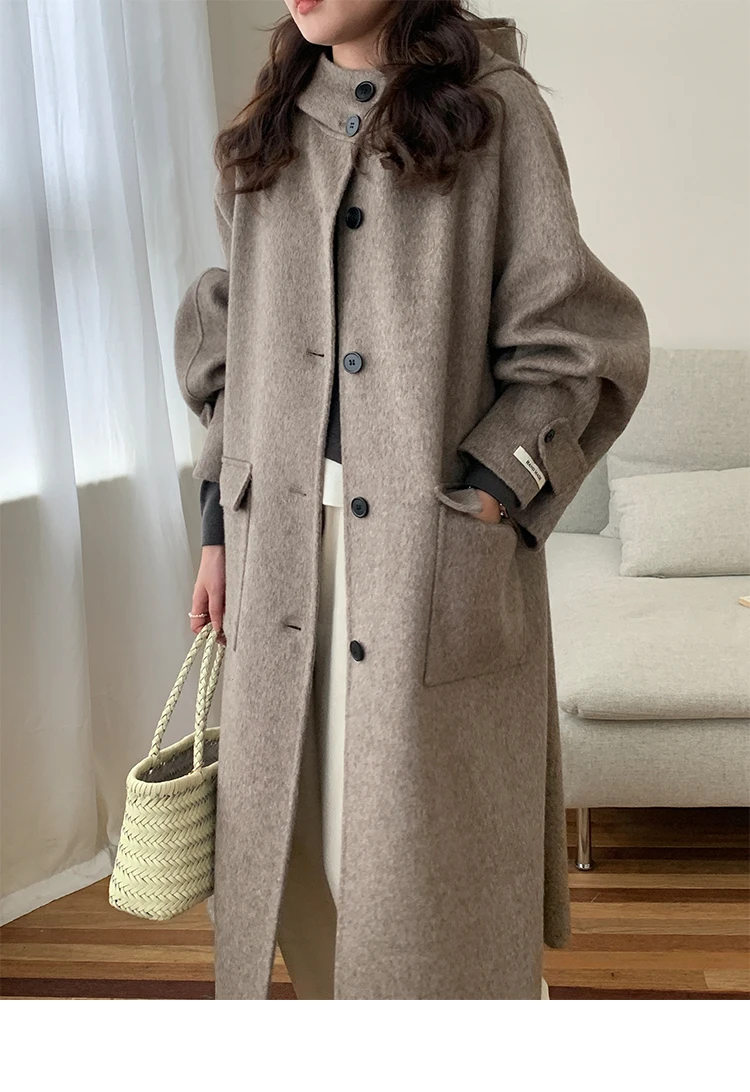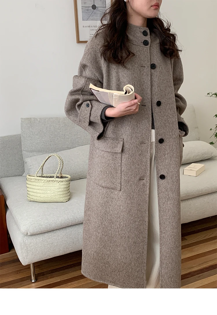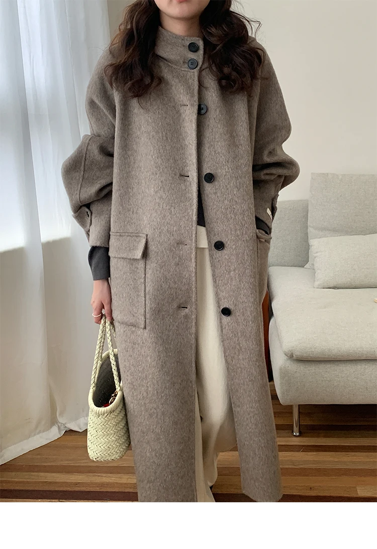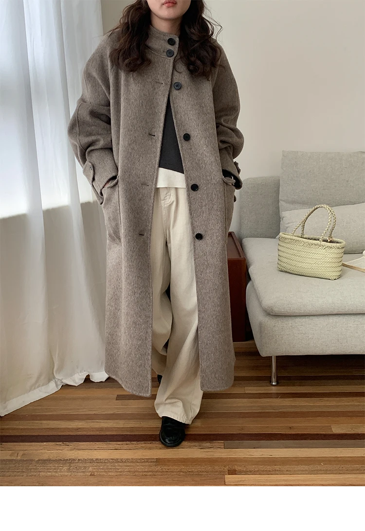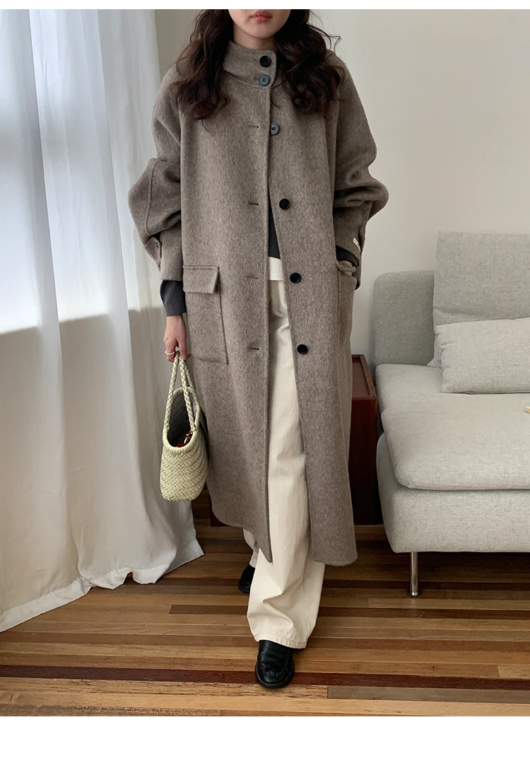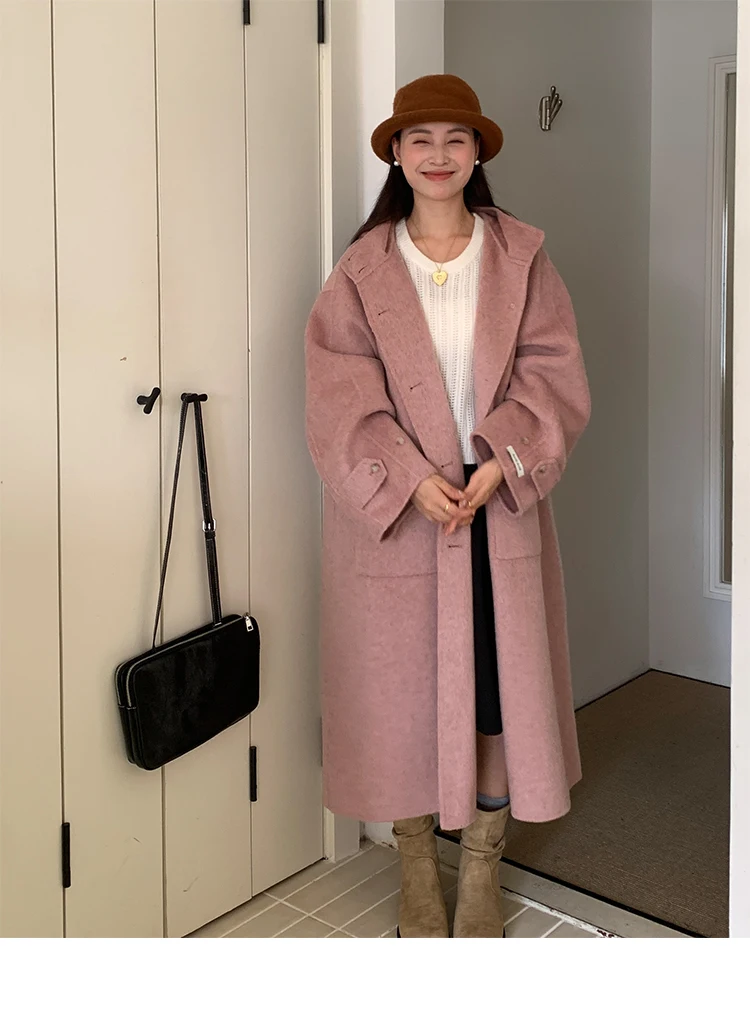 La silhouette ampia e lunga e lo stile a vita larga di questo cappotto da ufficio da donna aiutano a creare un look giovane e che riduce l’età.