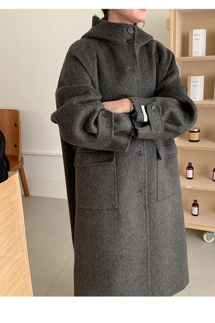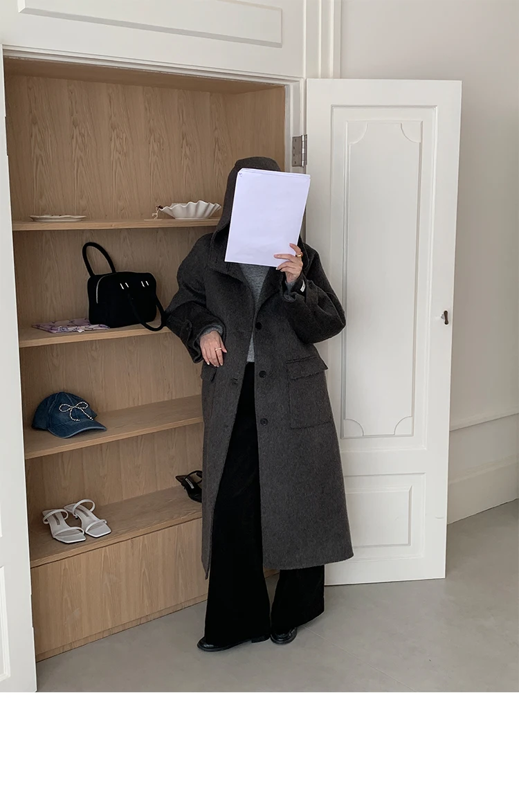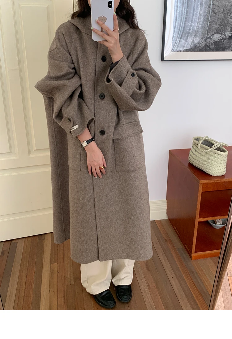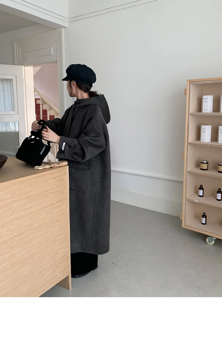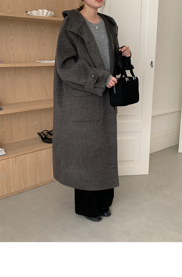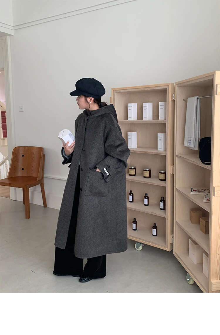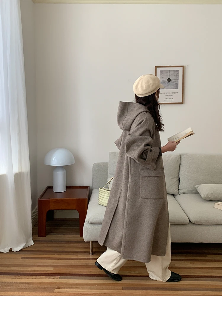La silhouette ampia e lunga e lo stile a vita larga di questo cappotto da ufficio da donna aiutano a creare un look giovane e che riduce l’età.