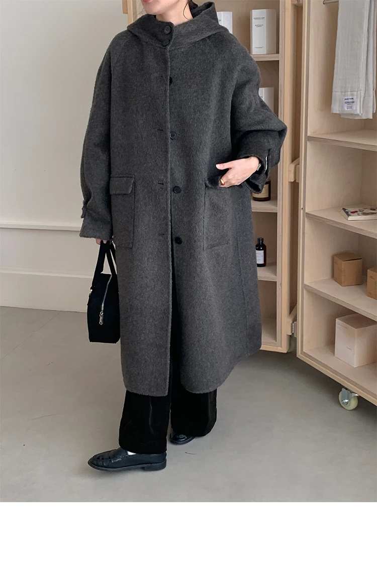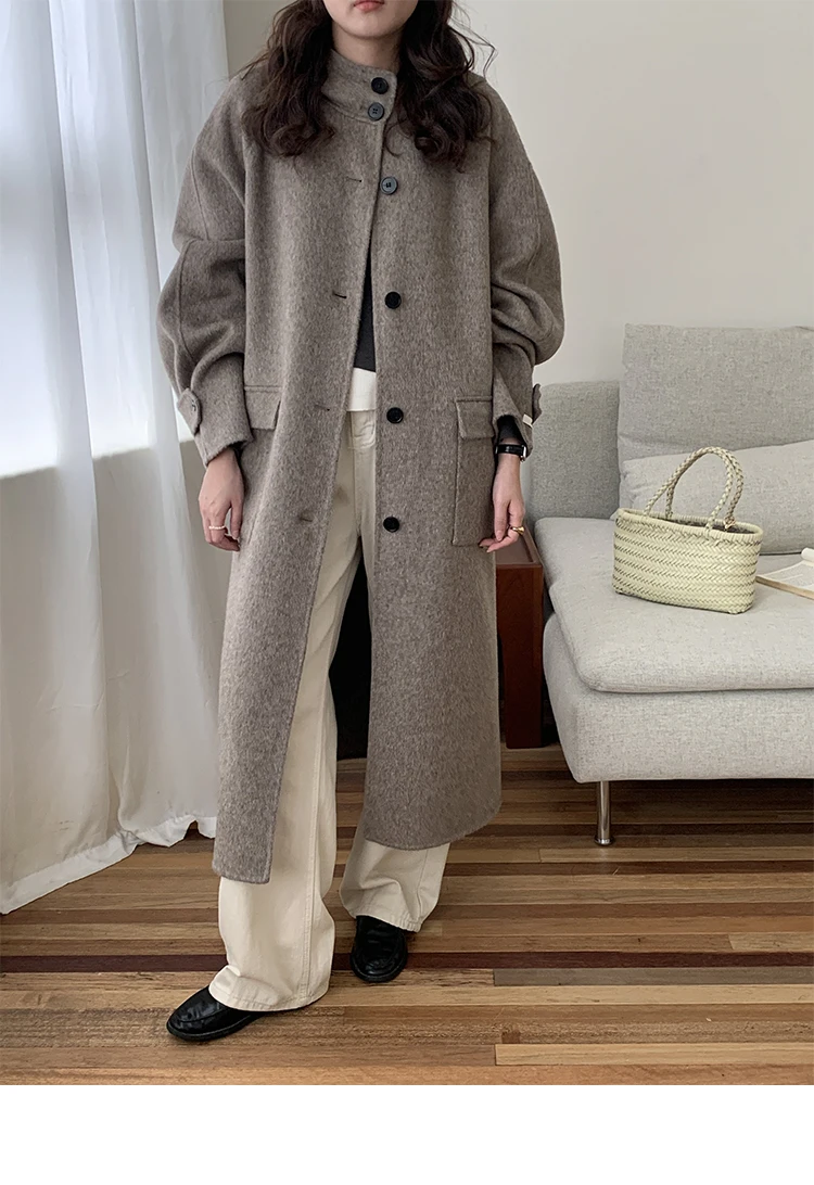 Con il suo stile con maniche a spalla abbassata e l’apertura completa, questo cappotto offre comfort e facilità di movimento.