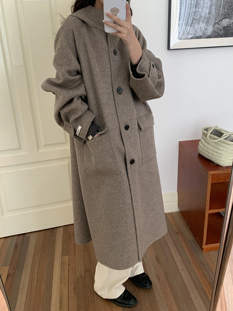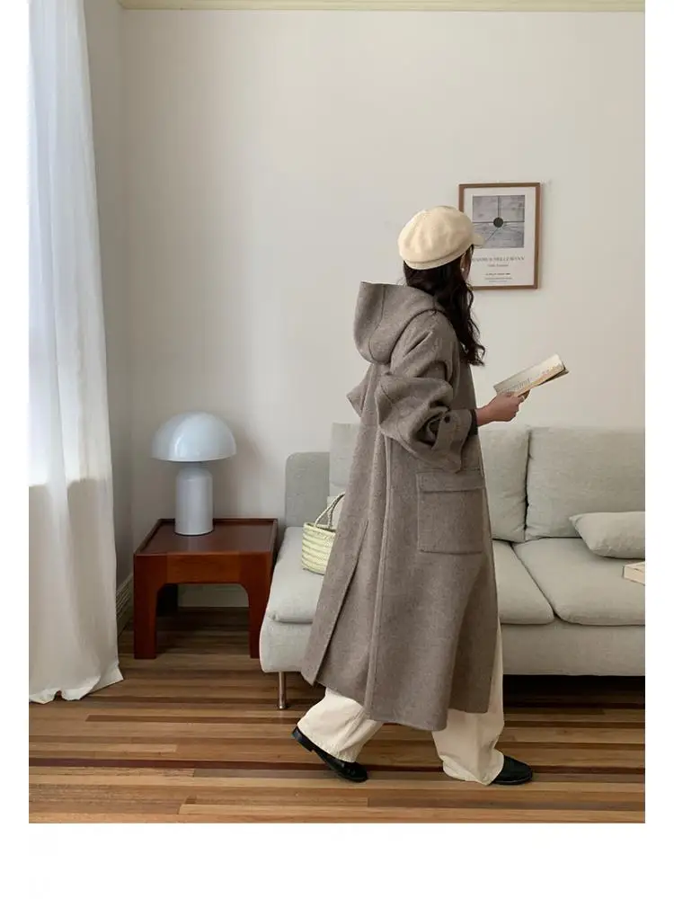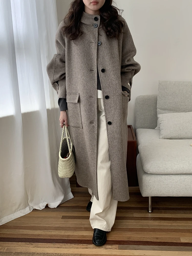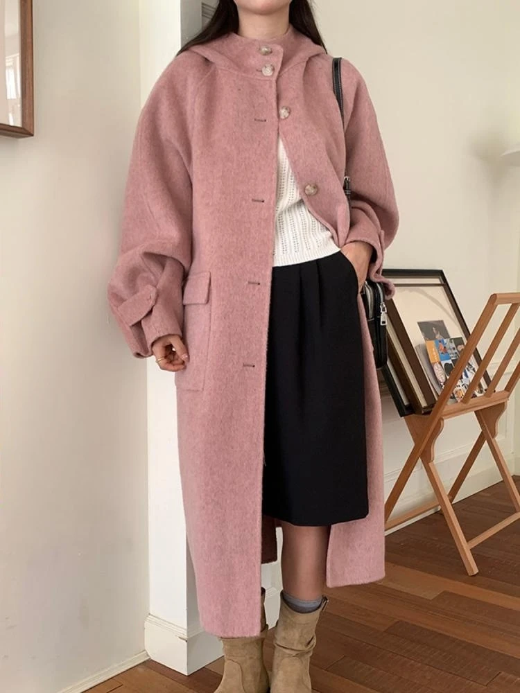 La silhouette ampia e lunga e lo stile a vita larga di questo cappotto da ufficio da donna aiutano a creare un look giovane e che riduce l’età.
