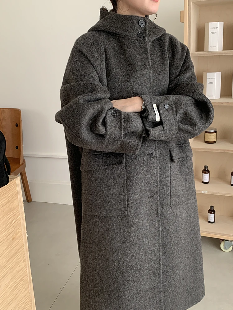 Con il suo stile con maniche a spalla abbassata e l’apertura completa, questo cappotto offre comfort e facilità di movimento.