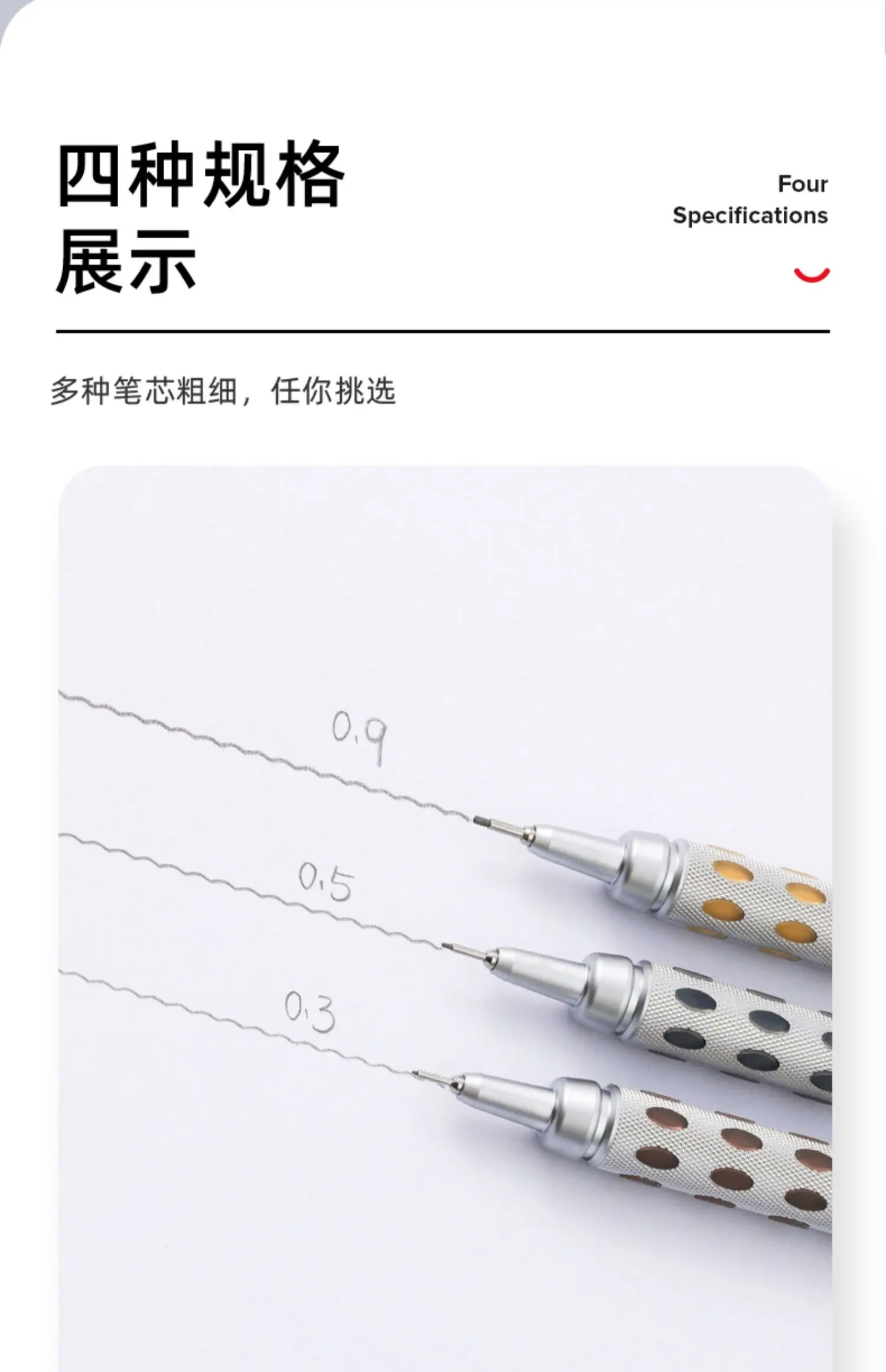 Scegli tra punte da 0,3/0,5/0,7/0,9 mm per un disegno preciso e opere d’arte dettagliate.