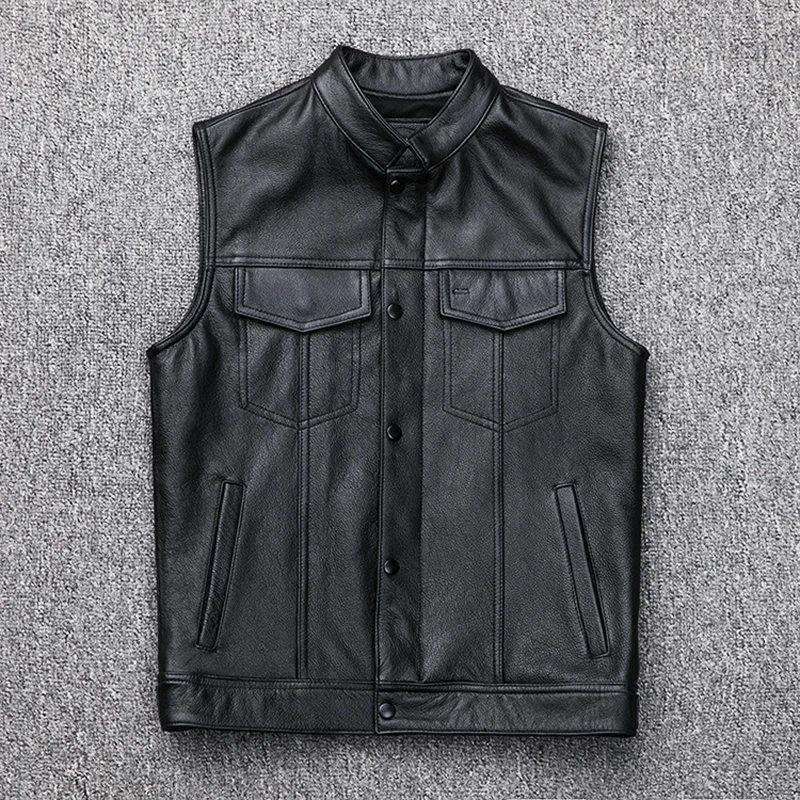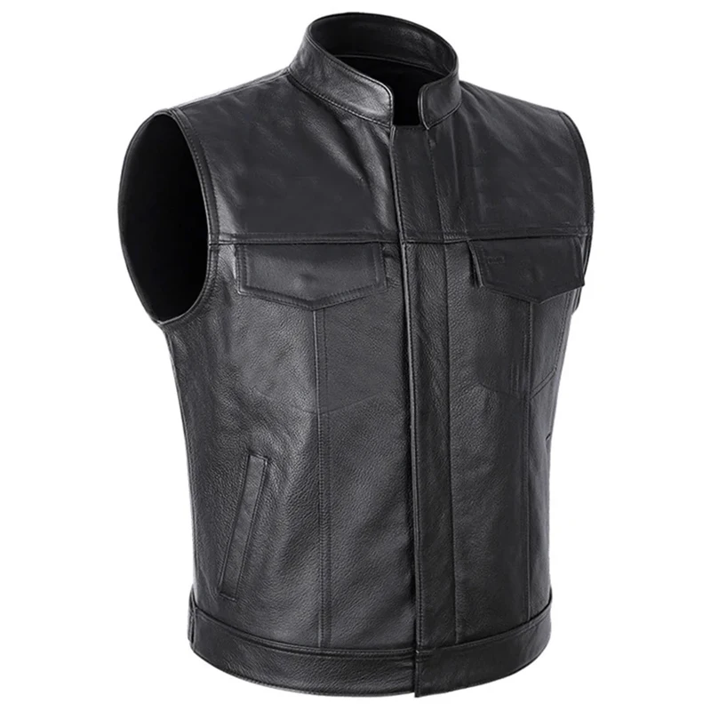 Gilet da uomo in ecopelle autunno inverno classico da uomo colletto alla coreana gilet da motociclista in pelle abbigliamento elegante 1Gilet da uomo in ecopelle autunno inverno classico da uomo colletto alla coreana gilet da motociclista in pelle abbigliamento elegante