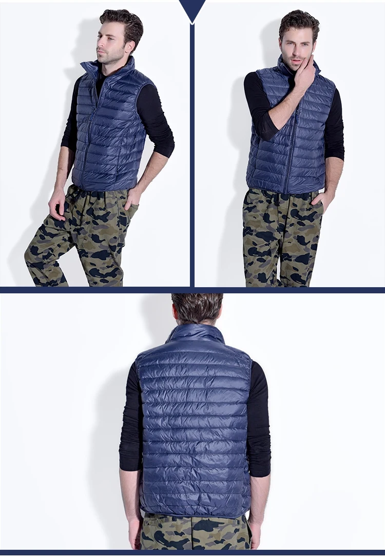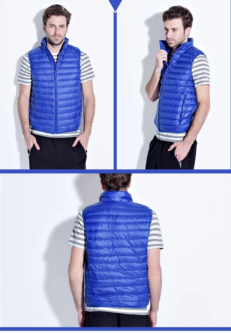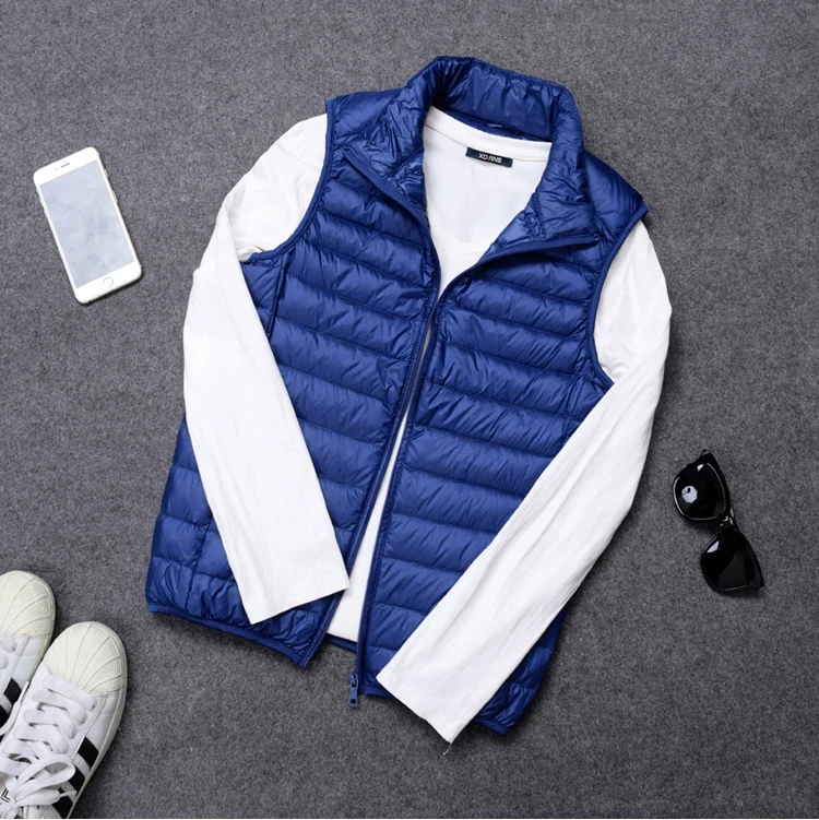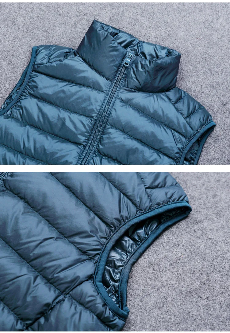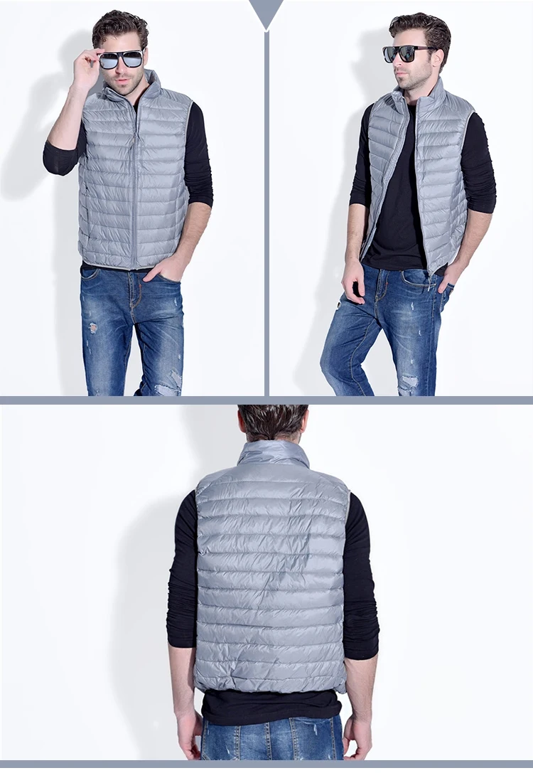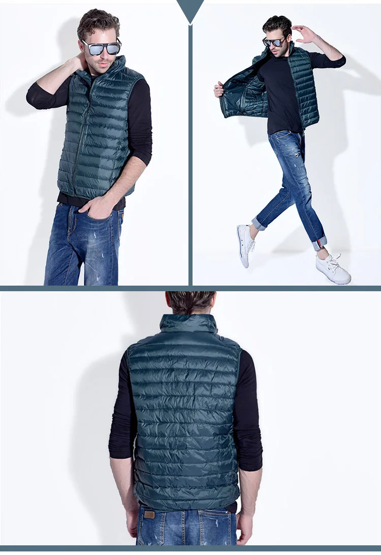 Gilet da uomo in piuma d’anatra bianca al 90% autunno e inverno, casual, leggero, caldo, solido, senza maniche, gilet tascabile portatile da uomo