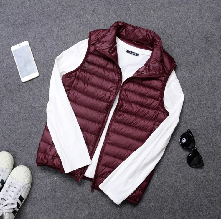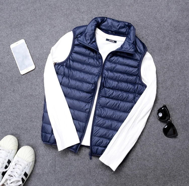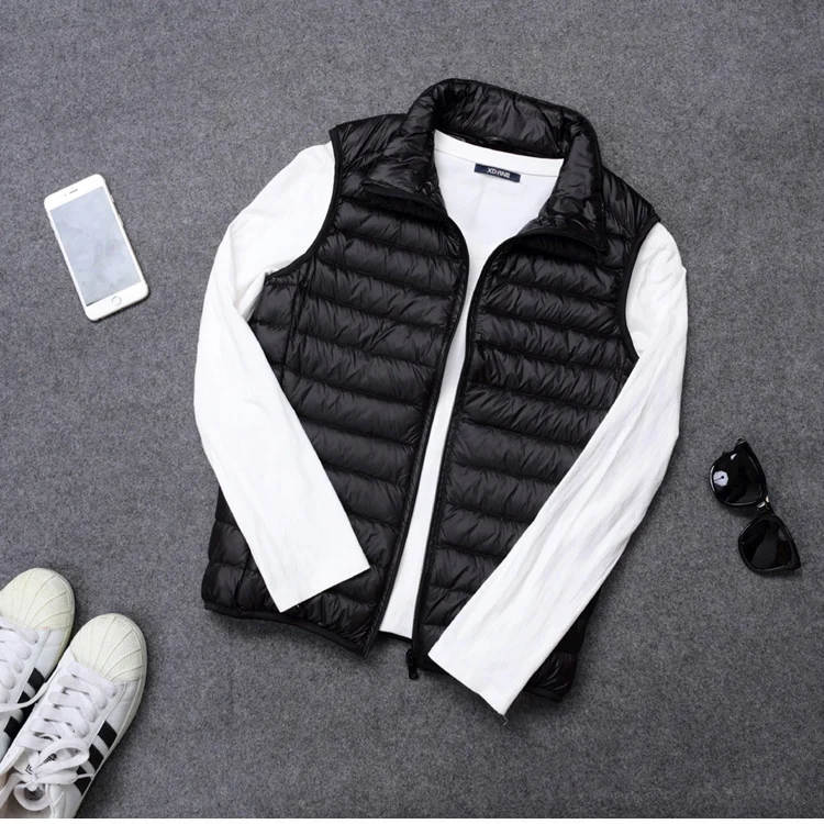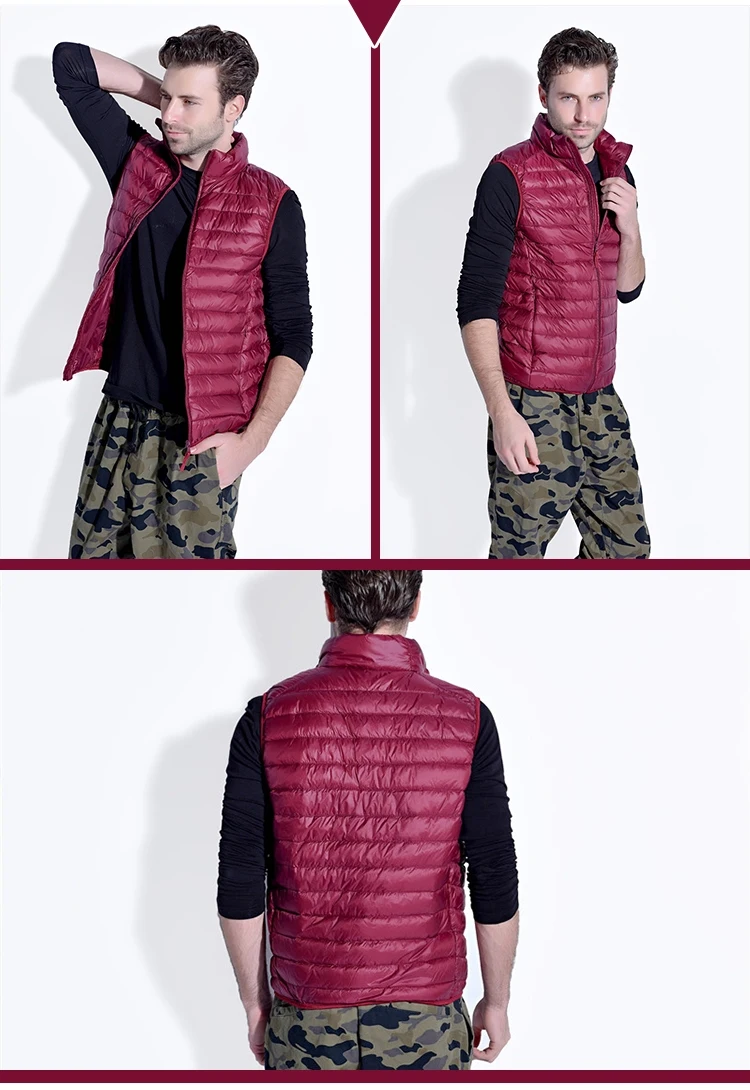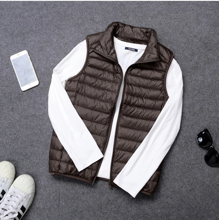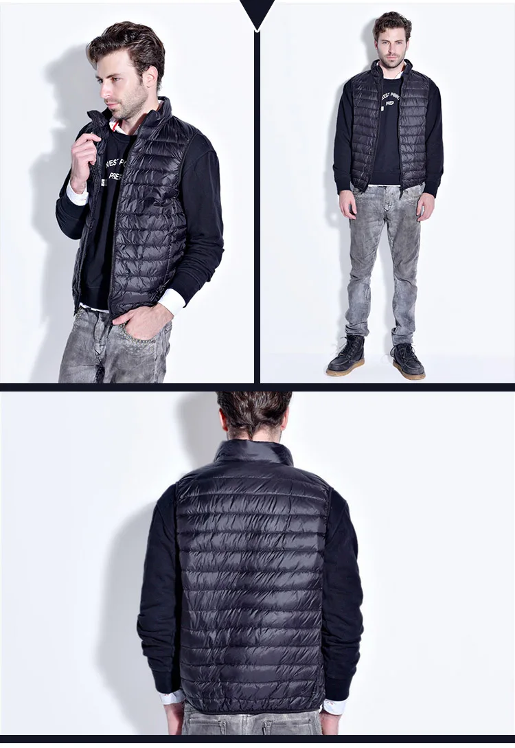 Gilet da uomo in piuma d’anatra bianca al 90% autunno e inverno, casual, leggero, caldo, solido, senza maniche, gilet tascabile portatile da uomo