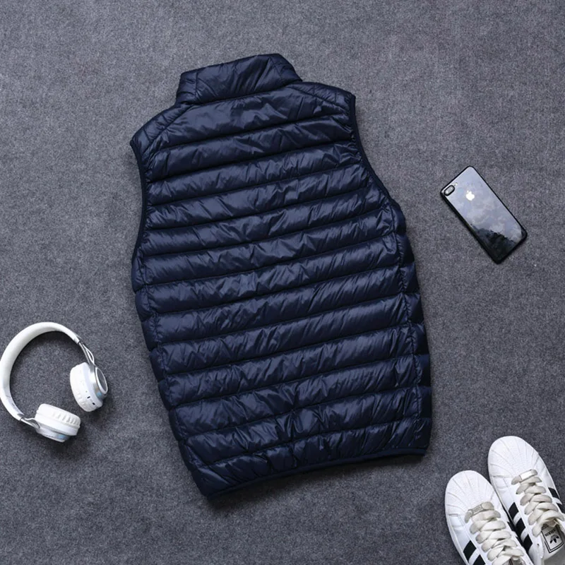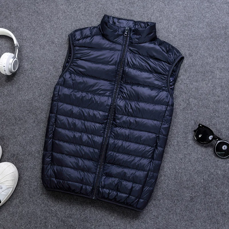 Gilet da uomo in piuma d’anatra bianca al 90% autunno e inverno, casual, leggero, caldo, solido, senza maniche, gilet tascabile portatile da uomo