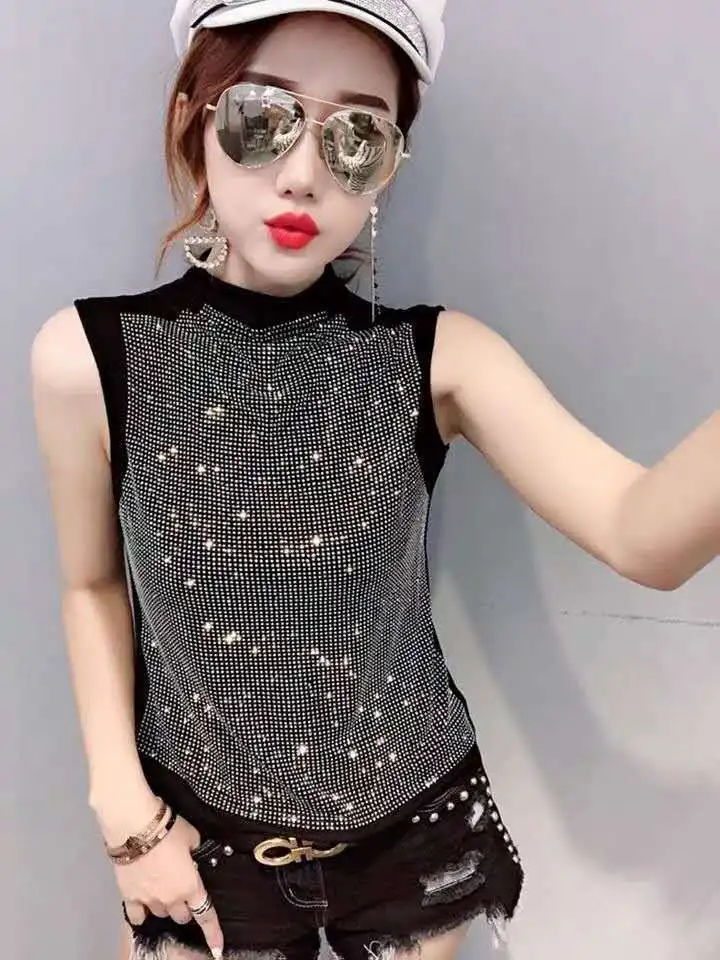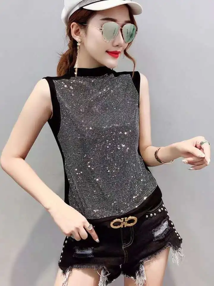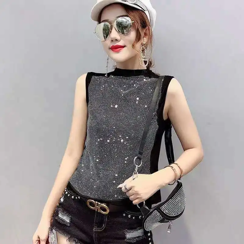 Gilet senza maniche di nuova moda estiva da donna High Street Casual Slim Ventilate Pullover Top eleganti con strass All-match Chic