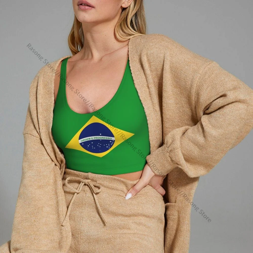Gilet sportivo Sexy da donna bandiera brasiliana femminile Streetwear Sport Lingerie Tee Crop Top