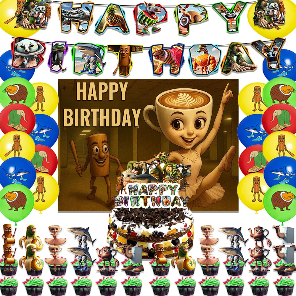 Banner di compleanno di buona dimensione e materiale, palloncini di buon materiale e tutti i colori, topper per cupcake molto carini di buona dimensione con supporto per metterli sul torto, cartoncini appesi di buon materiale e design molto carini, palloncino con numero dorato.