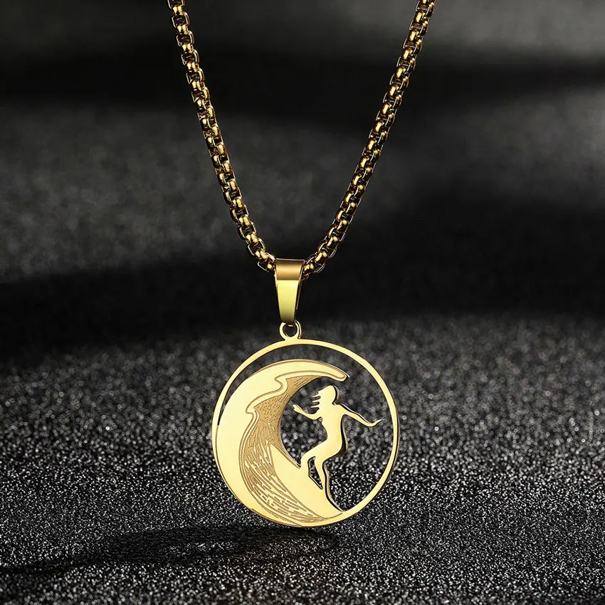 Gioielli da viaggio estivi da spiaggia Collana da surf oceano placcato oro 18 carati Ciondolo disco in acciaio inossidabile per gli amanti del surfista Hawaii 1Gioielli da viaggio estivi da spiaggia Collana da surf oceano placcato oro 18 carati Ciondolo disco in acciaio inossidabile per gli amanti del surfista Hawaii