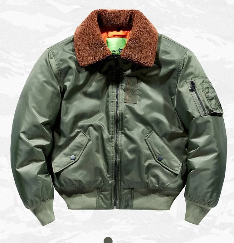 Giubbotto Bomber invernale da uomo con collo in pelliccia cappotti militari fodera in cotone spesso Warm MA-1 giacca da pilota da volo maschile