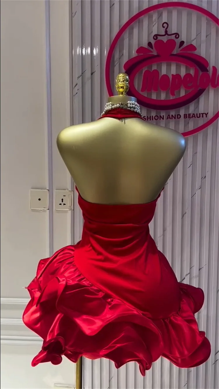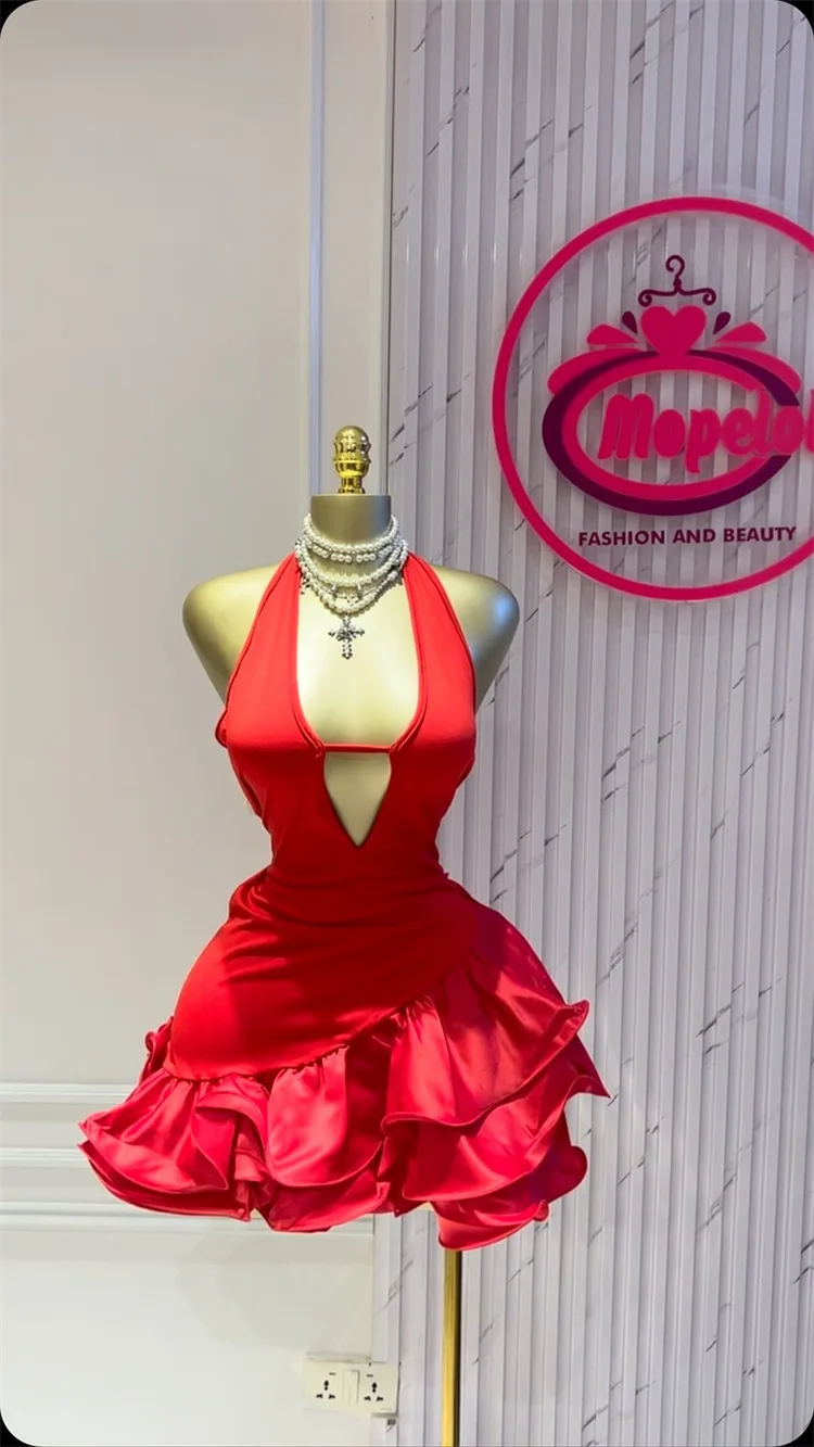GLCMYAYA Abito da donna senza maniche con scollo a V e volant Abito da ballo Grembiule A-line Mini abito longuette 2025 Abiti da festa per le vacanze estive