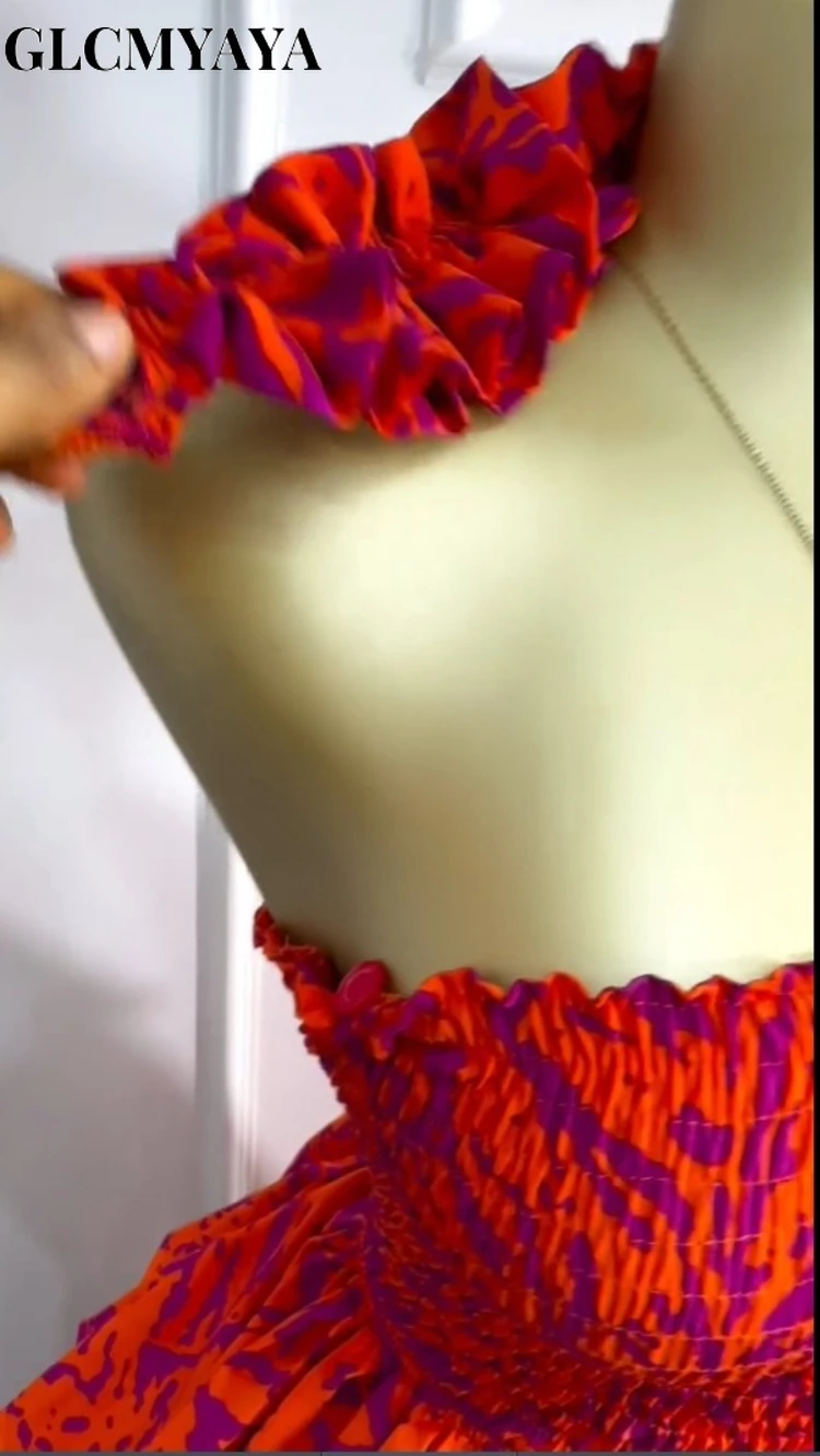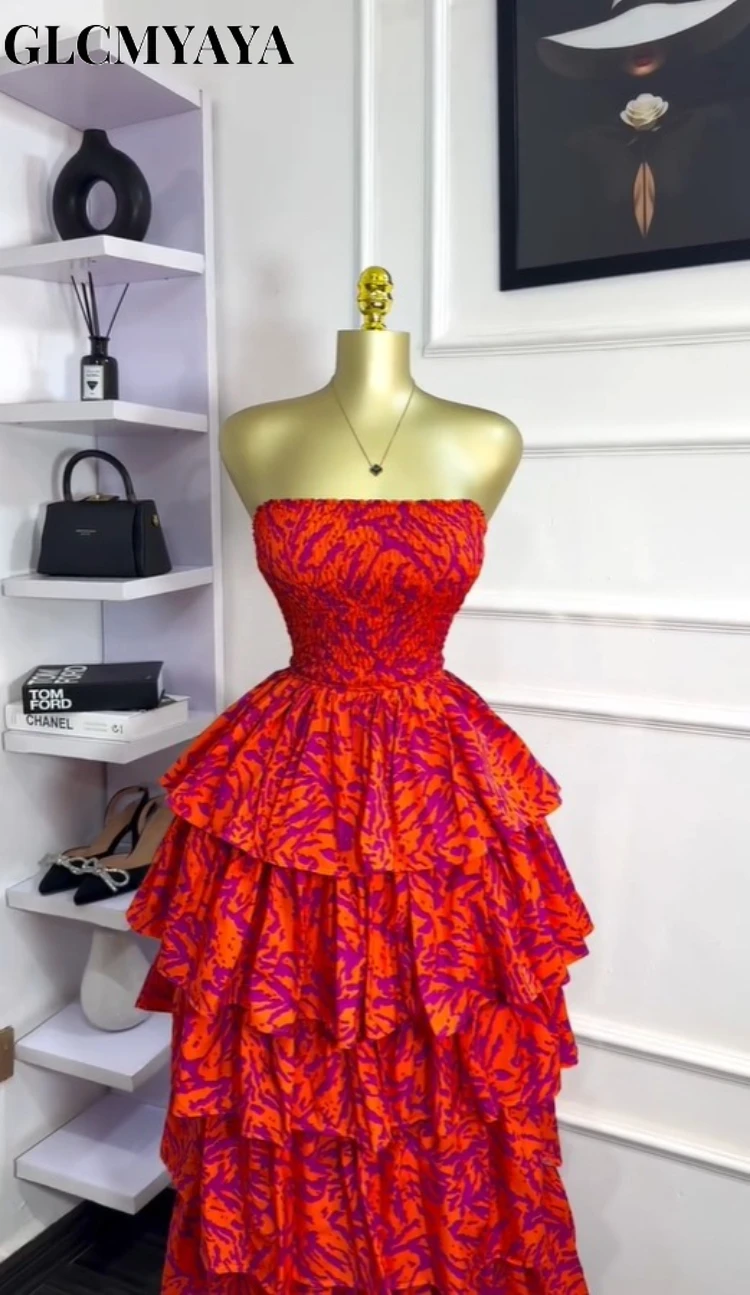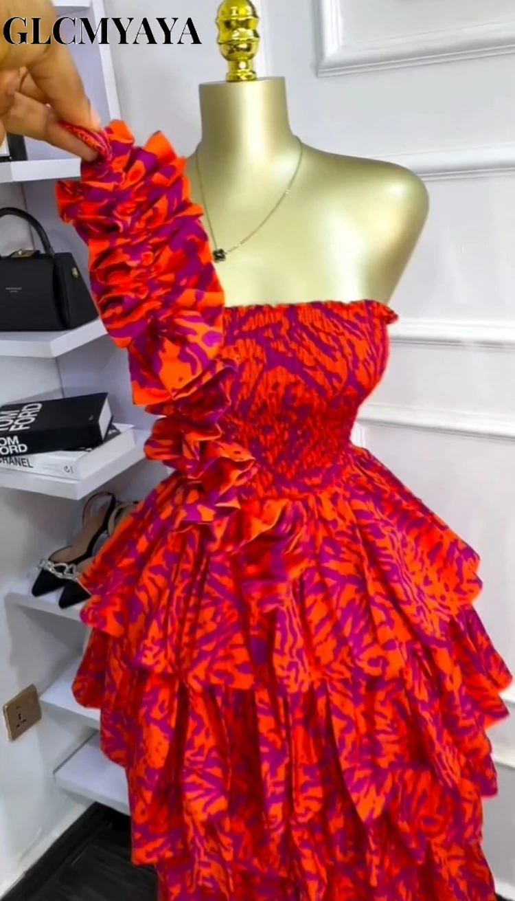 GLCMYAYA Donna Stampato floreale Increspature a cascata Abito da ballo Midi Maxi Abito lungo Vacanza di compleanno Abiti da festa Abiti