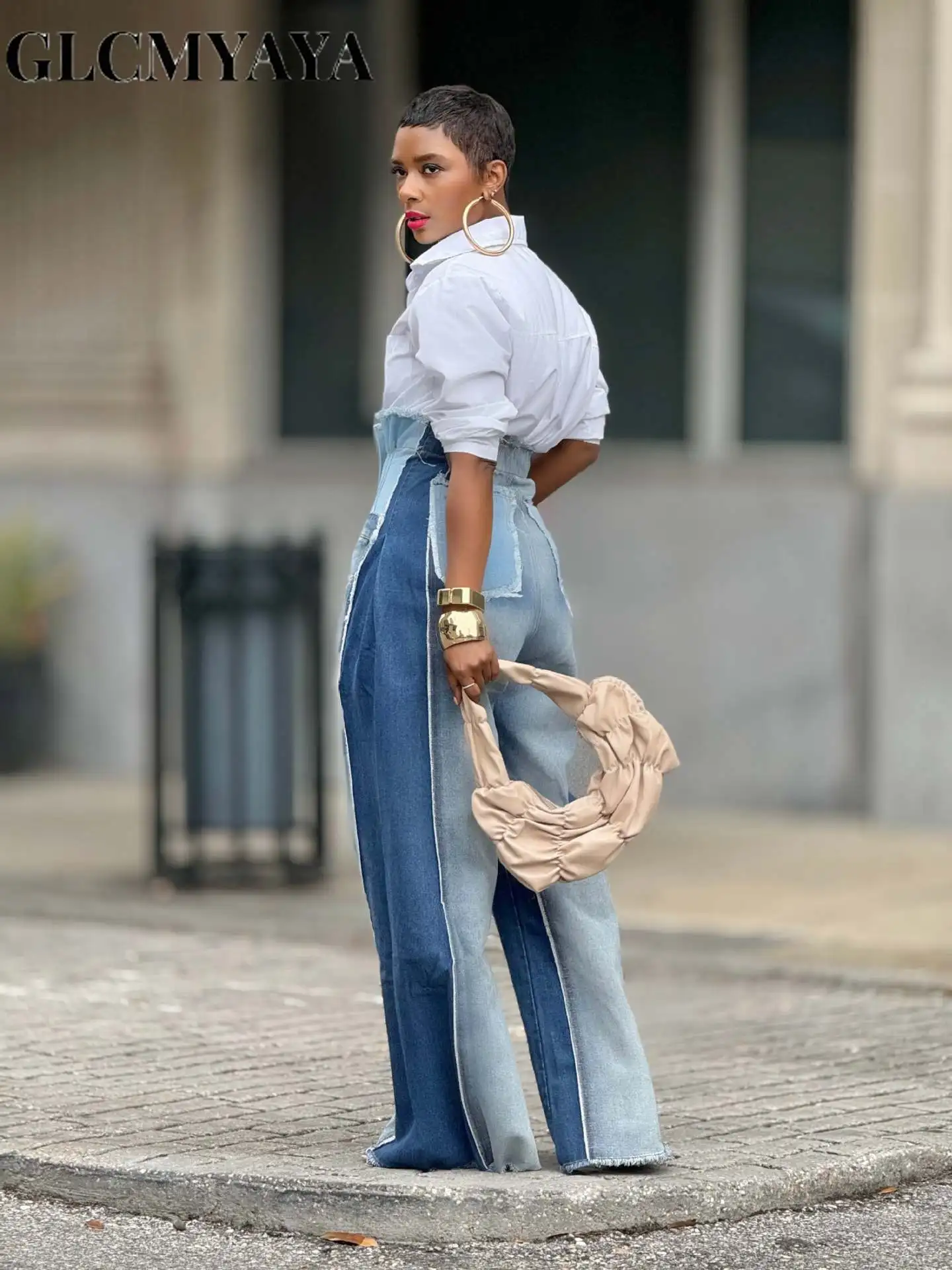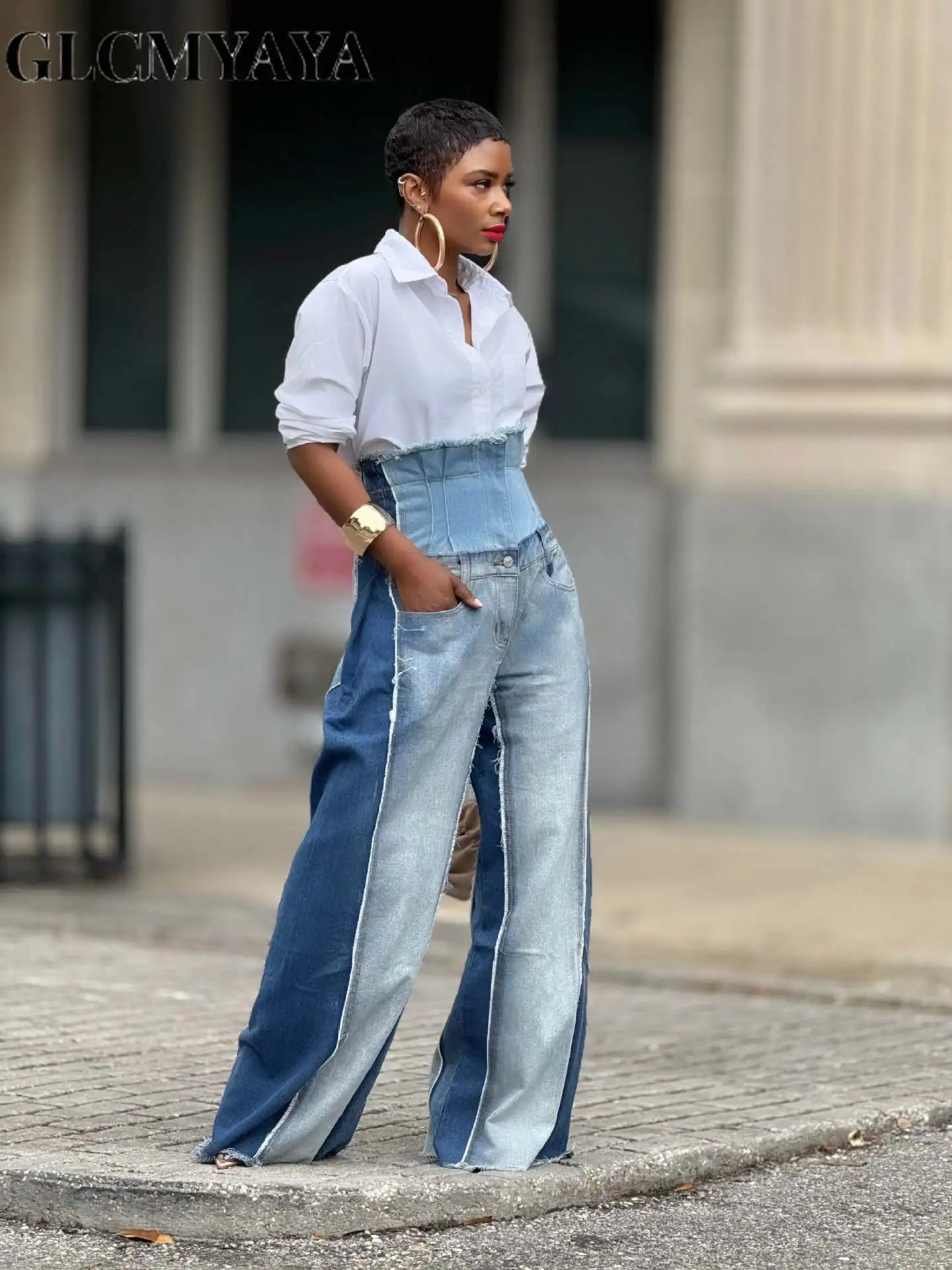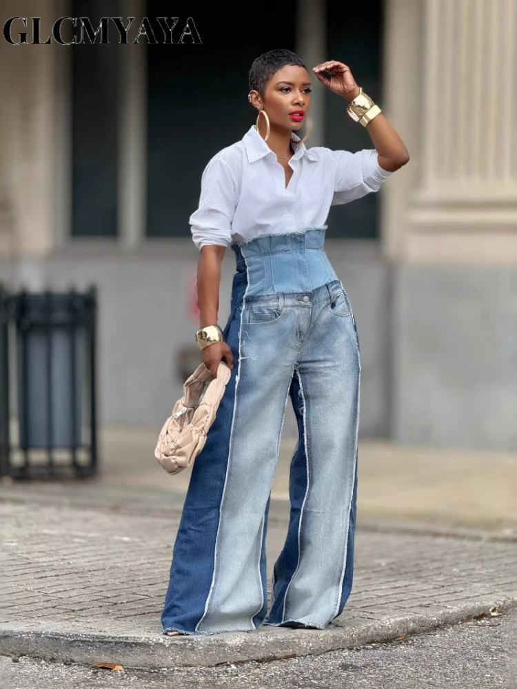 GLCMYAYA Donna Streetwear Moda Fly Pantaloni in denim lavato Jeans 2025 Autunno Inverno Patchwork allentato Safari Cargo Jeans Hip Hop