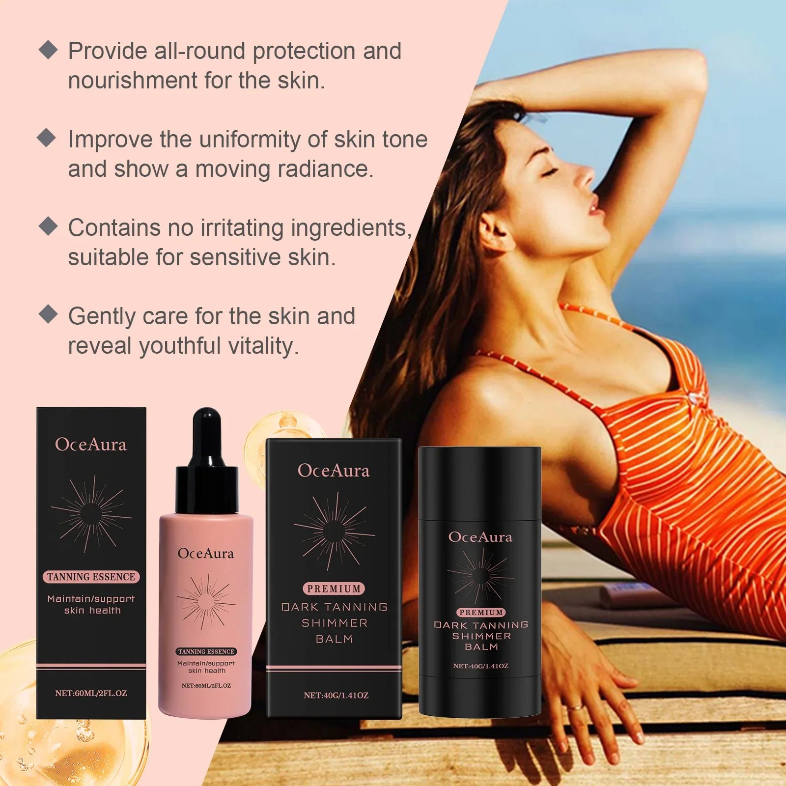 OceAura Gocce autobronzanti per viso corpo Nutriente duraturo Migliora la melanina della pelle Bronzer Prevenire le scottature solari Prodotti abbronzanti senza sole