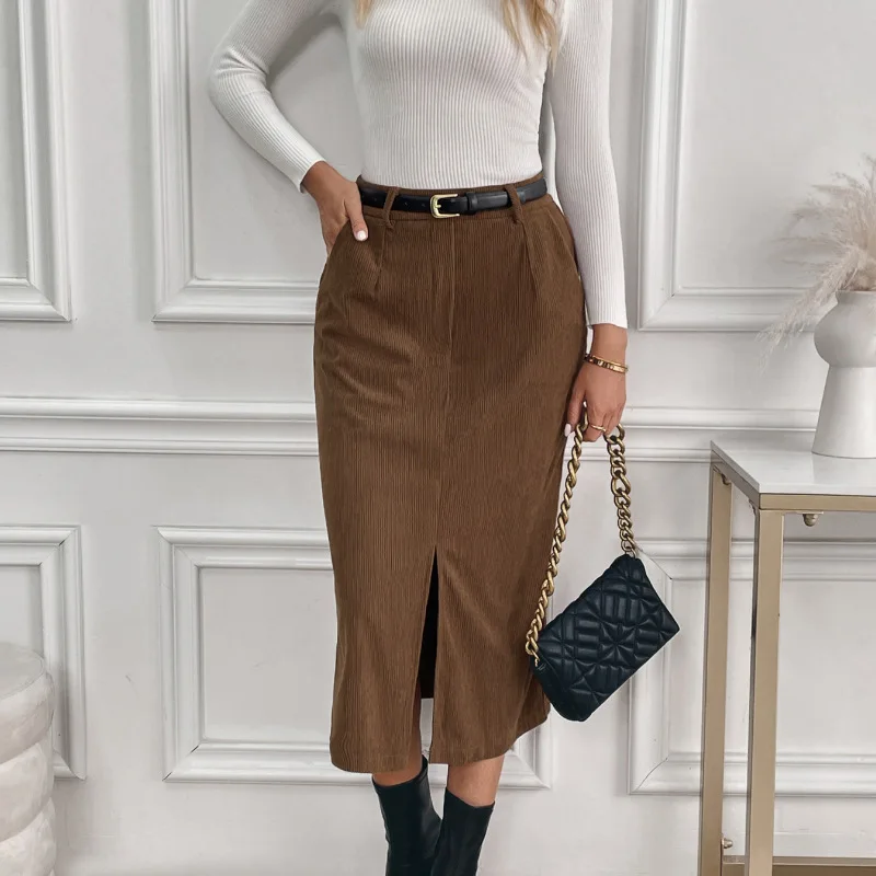 Gonna a fessura da pendolarismo elegante autunno inverno in velluto a coste retrò da donna nuovo stile
